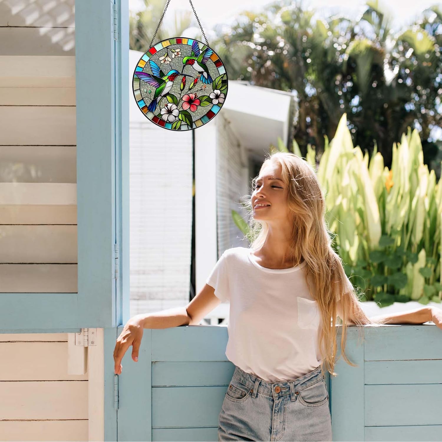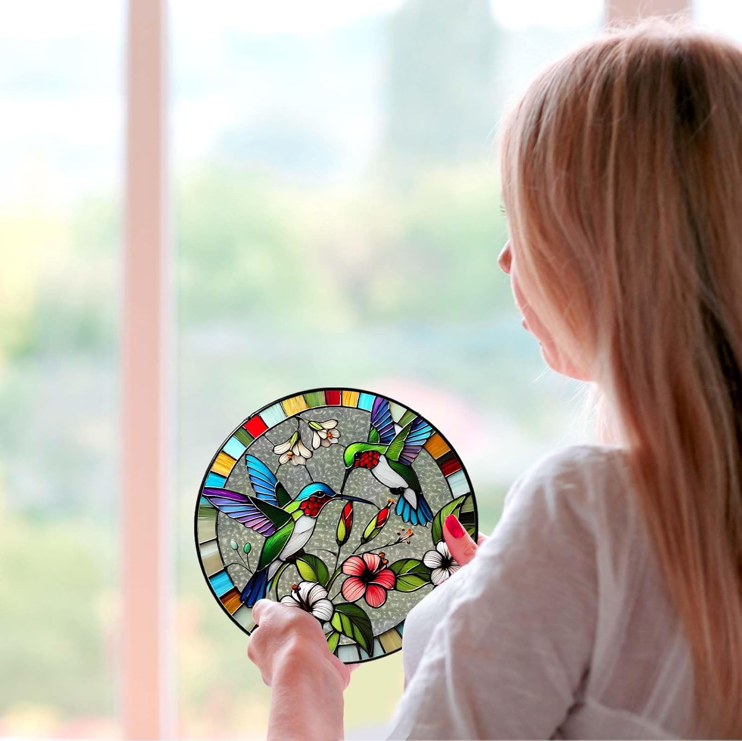 Hummingbird Sun Catcher Stained Glass Window Hanging Hummingbird Decor Gifts Bird Suncatcher for Window Decor Handmade Sun Catcher Decoration for Garden Home Housewarming Gifts