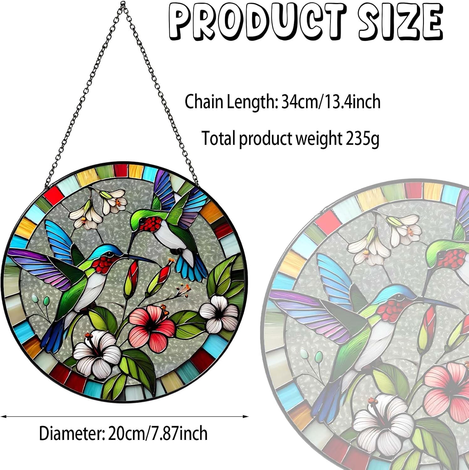 - 【Exquisite Craftsmanship】The beauty of stained glass suncatcher(7.87inch)is not comparable to plastic acrylic. Excellent craftsmen make suncatchers for windows hanging by hand, which not only makes each stained glass look classic and exquisite, but also vividly outlines different designs through delicate brushstrokes, showing the unique texture and beauty of glass materials