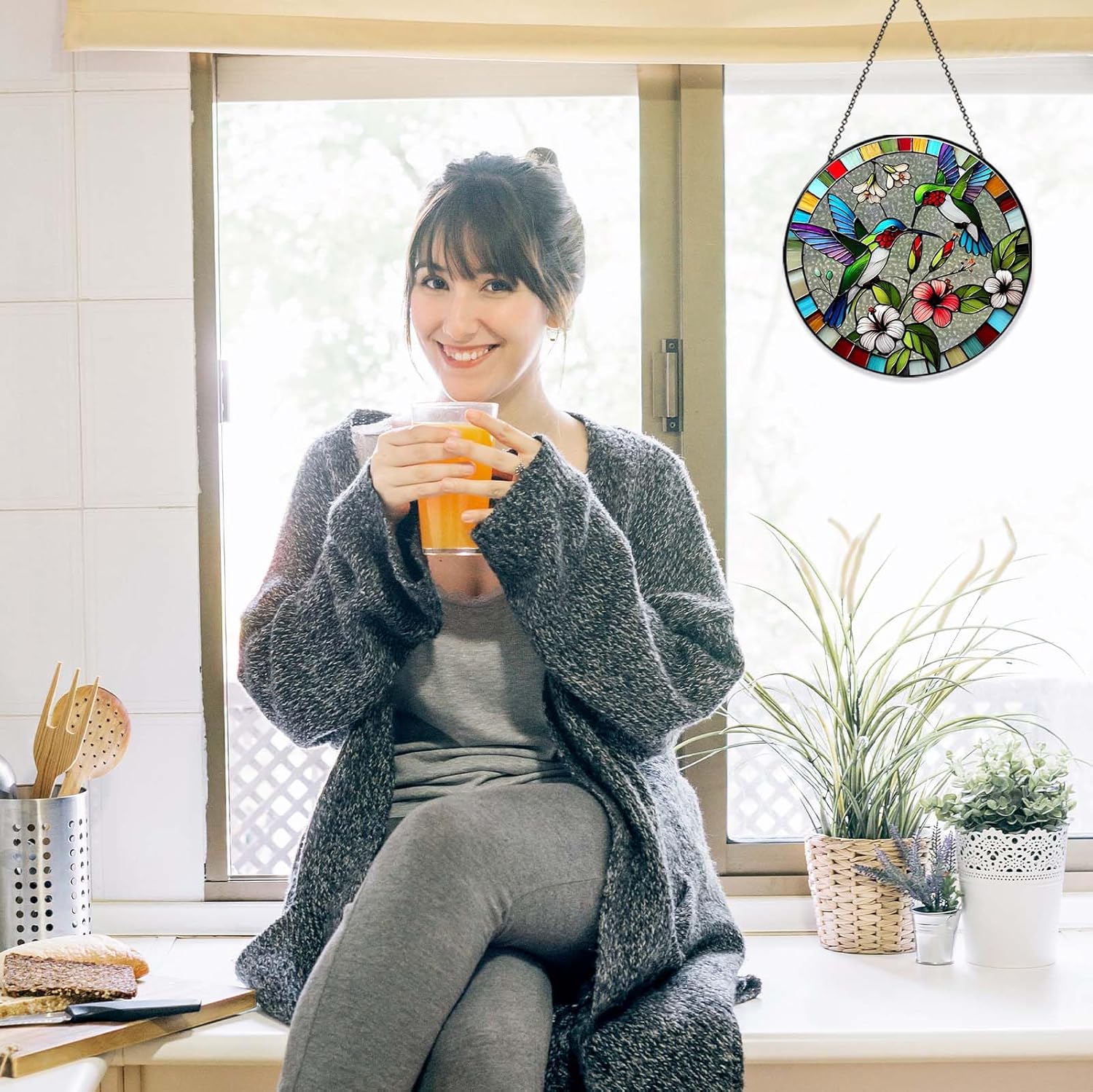 - 【Safety and Easy Installation】This suncatcher for windows hanging is made of safe materials, with a special box and foam packaging, and is not easily damaged during transportation.Stained glass suncatcher is very easy to install, just hang it up to show the beauty of the glass and give you happiness