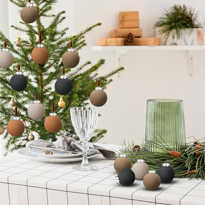 24 Pcs Neutral Matte Christmas Ball Ornaments 2.4 Inch Rustic Boho Brown Black Ivory Terracotta Xmas Bulbs Ornament Vintage Xmas Baubles Modern Christmas Decor for Tree Farmhouse Decor