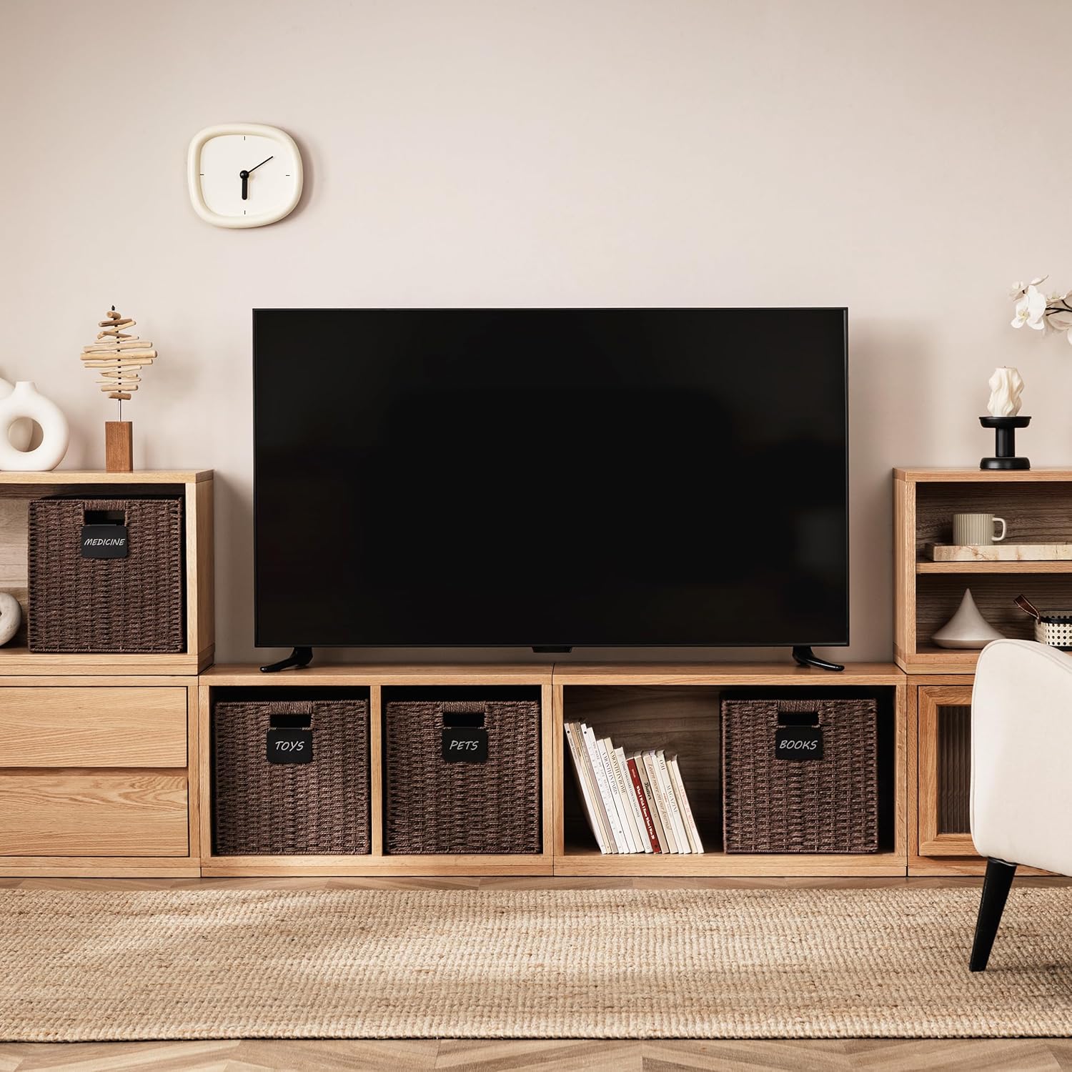 UBBCARE 2 Pack Wicker Basket, 10.5×10.5 Storage Cubes with Label, Foldable Cube Storage Bin with Handle, Square Storage Basket for Shelves, Woven Paper Rope Basket for Organizing, Brown