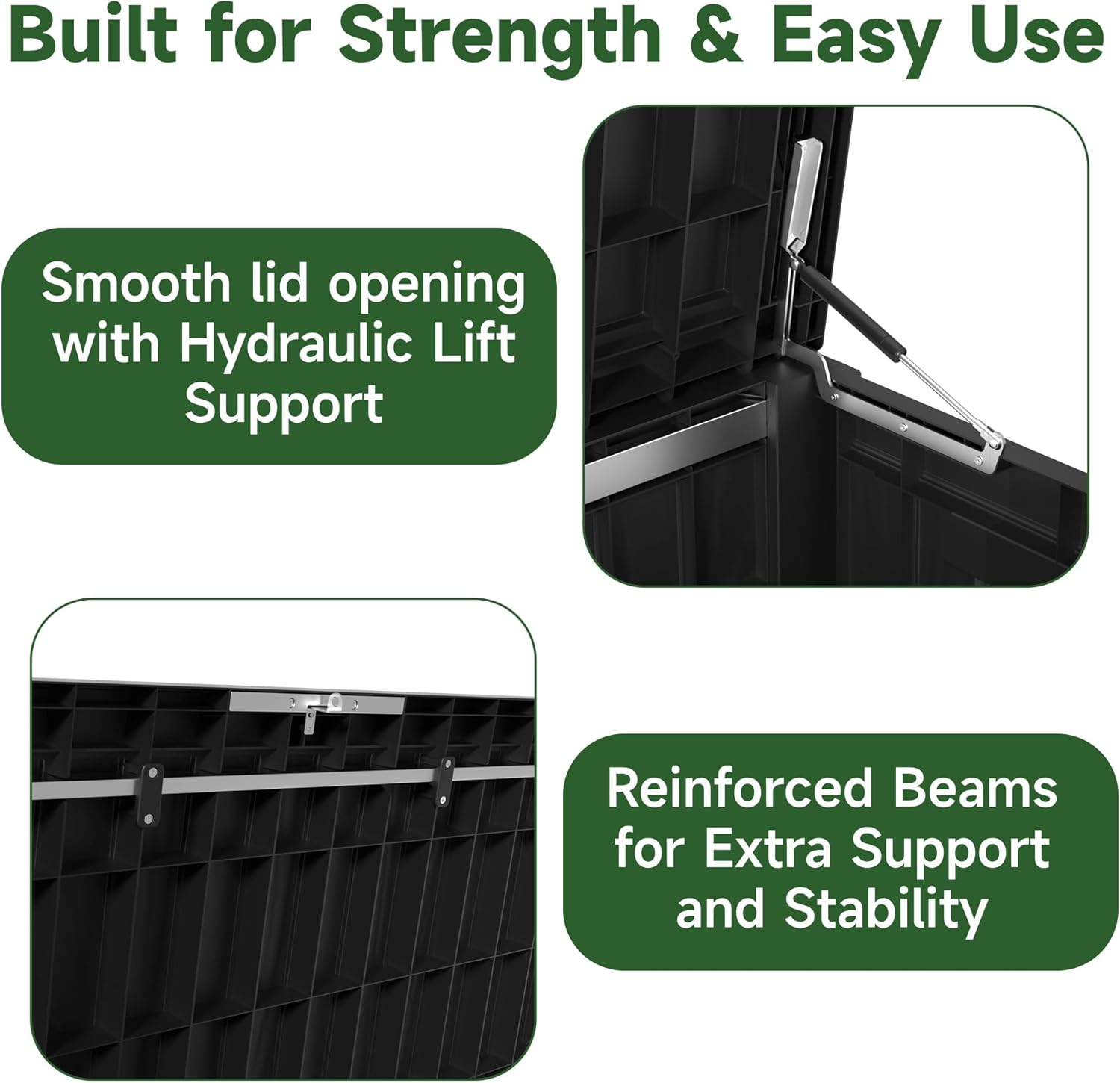 - STURDY AND RELIABLE BUILD:Designed with internal reinforcement, this deck box offers superior strength and stability compared to similar products. The robust panel construction and precise assembly help maintain its shape over time.