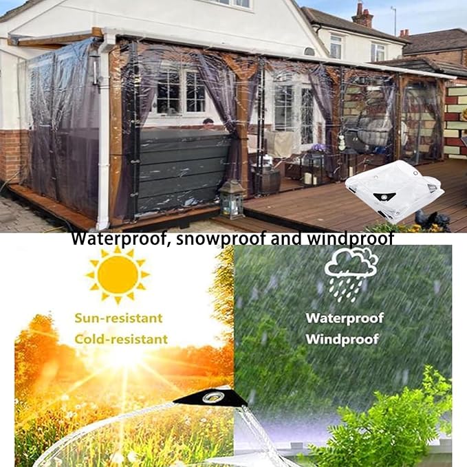 - EASY INSTALLATION: Comes with a bonus rope for quick setup and secure fastening to various structures or anchor points. Package Included: You will receive 1 transparent heavy-duty rainproof tarpaulin, and a roll of 5m/16.4ft windproof rope, fully meet your needs.