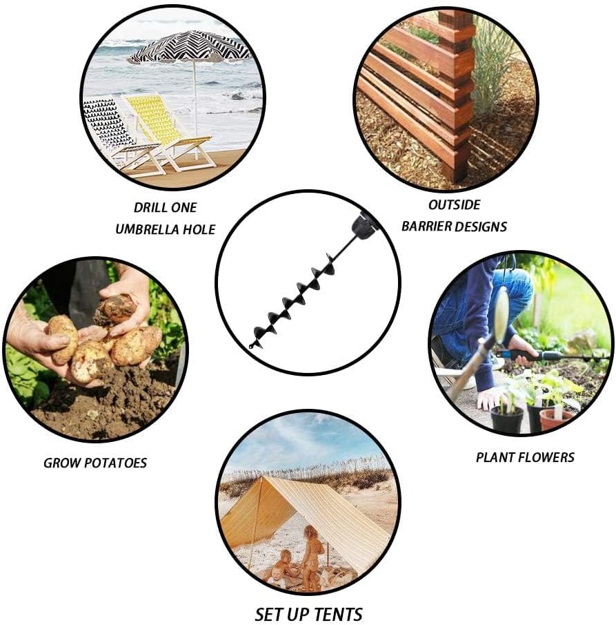 - 【Multi-purpose Tool】Our long auger drill bit for planting is a versatile tool designed for a wide range of applications. Perfect for planting shrubs and trees, it’s also ideal for installing larger planters, beach umbrellas, mailboxes, fences, and trellises. This multi-functional bit makes complex gardening and installation tasks easier and more efficient, making it a must-have for serious gardeners and DIY enthusiasts alike.