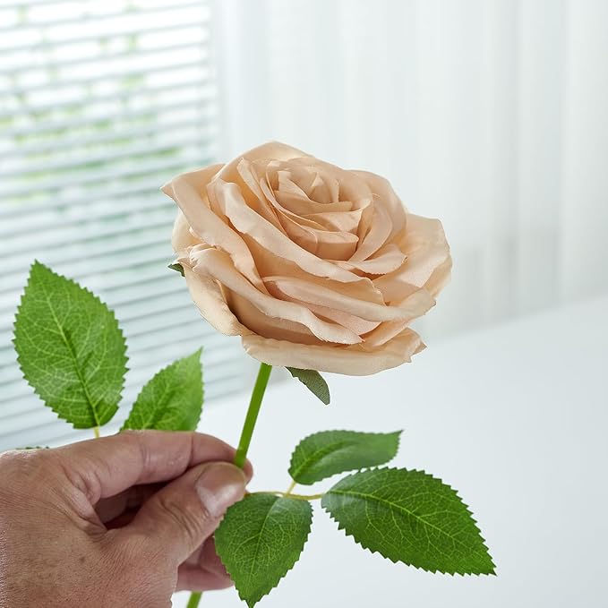 50pcs Beige Roses Artificial Flowers Bulk Fake Roses Silk Flower with Stems Realistic Flowers for Wedding Centerpiece Party Birthday Decor