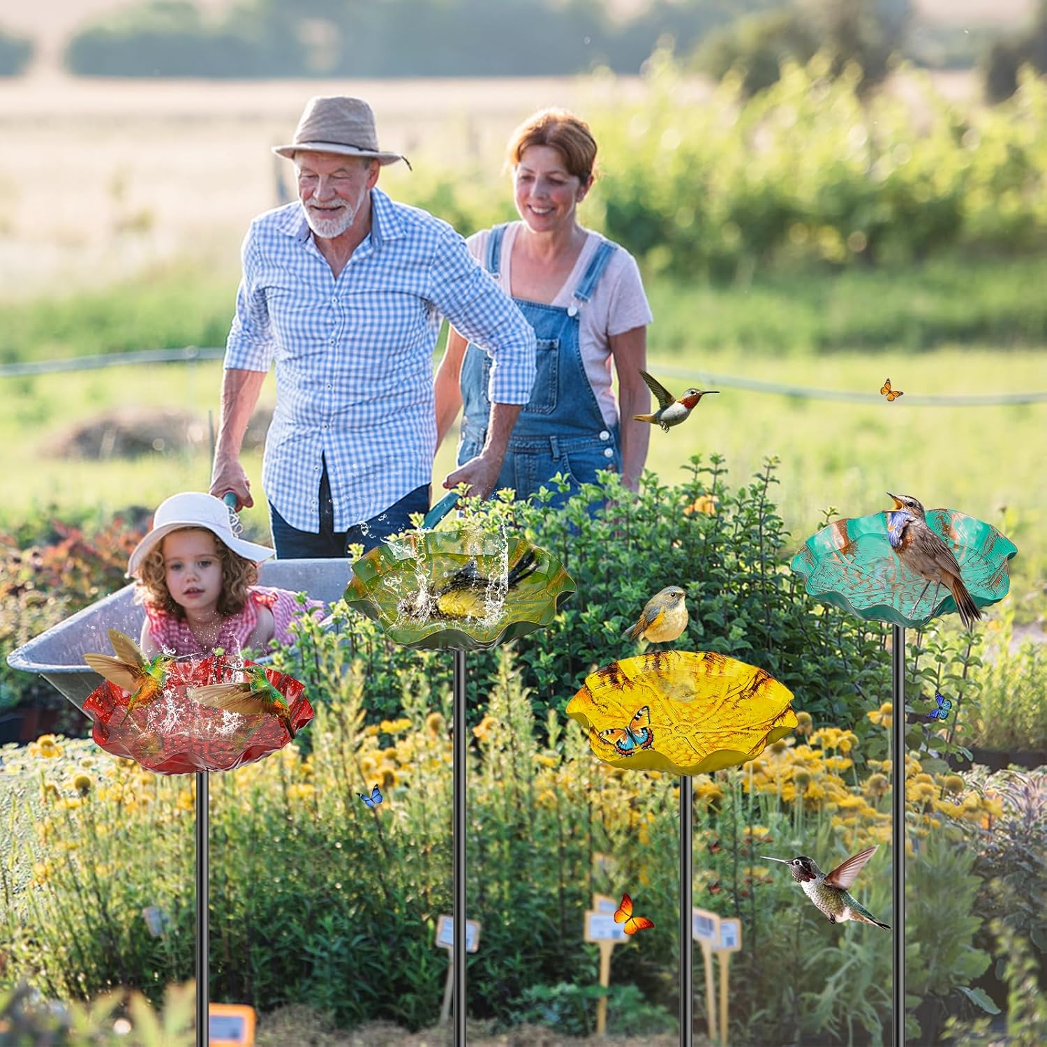 4PCS Hummingbird Bird Bath for Outside, Freestanding Metal Flower BirdBaths Bowl with Stake, Detachable Birdfeeder for Outdoor Yard Lawn Garden Decor (4PCS-Red-Yellow-Blue-Green)