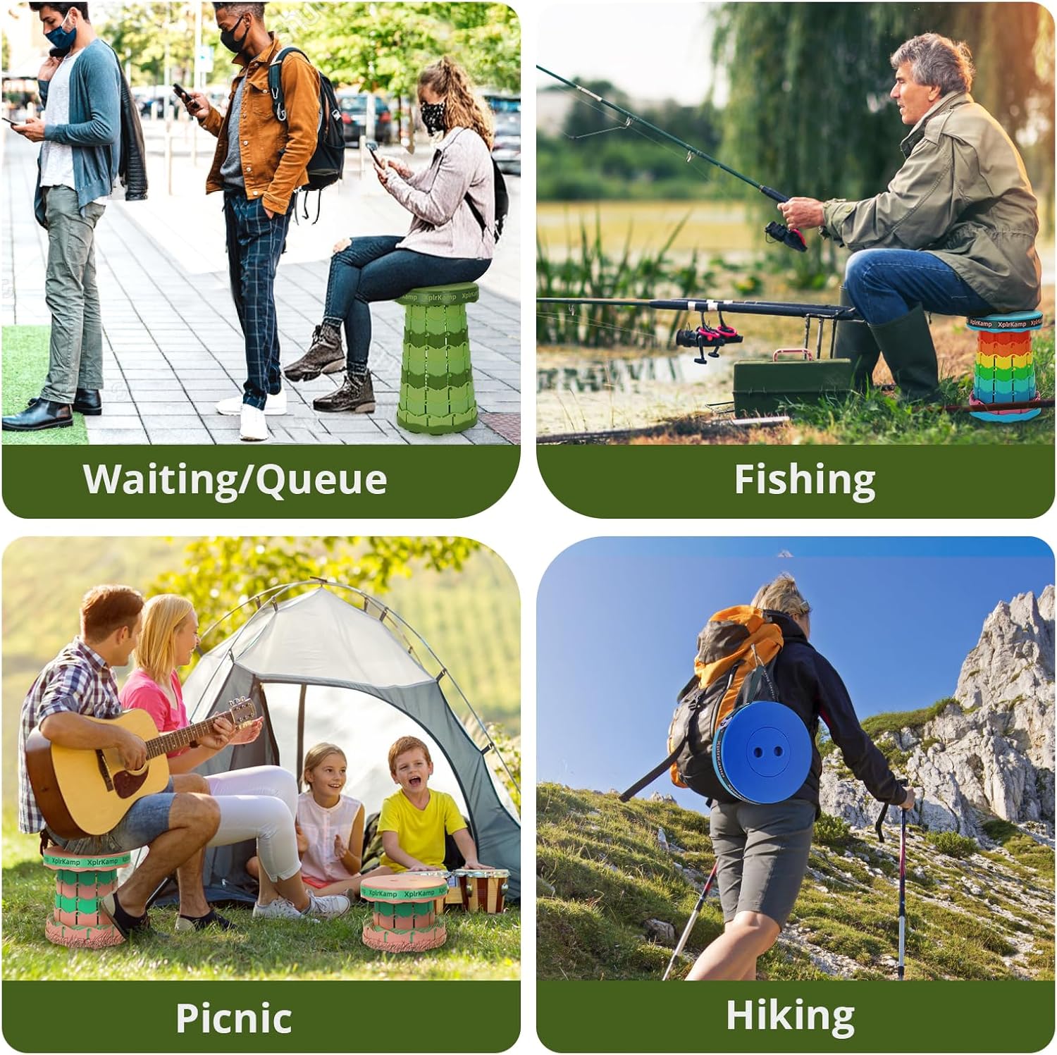 - Multi-Scenario: This collapsible stool transitions effortlessly from camping, hiking, fishing, and picnics to indoor/commuter use (offices, concerts, subway queues). With a telescopic design that fits in backpacks, it solves space constraints for DIY projects, plumbing work, gardening, and gift-giving occasions β weighing only 1.98lbs yet supporting 400lbs