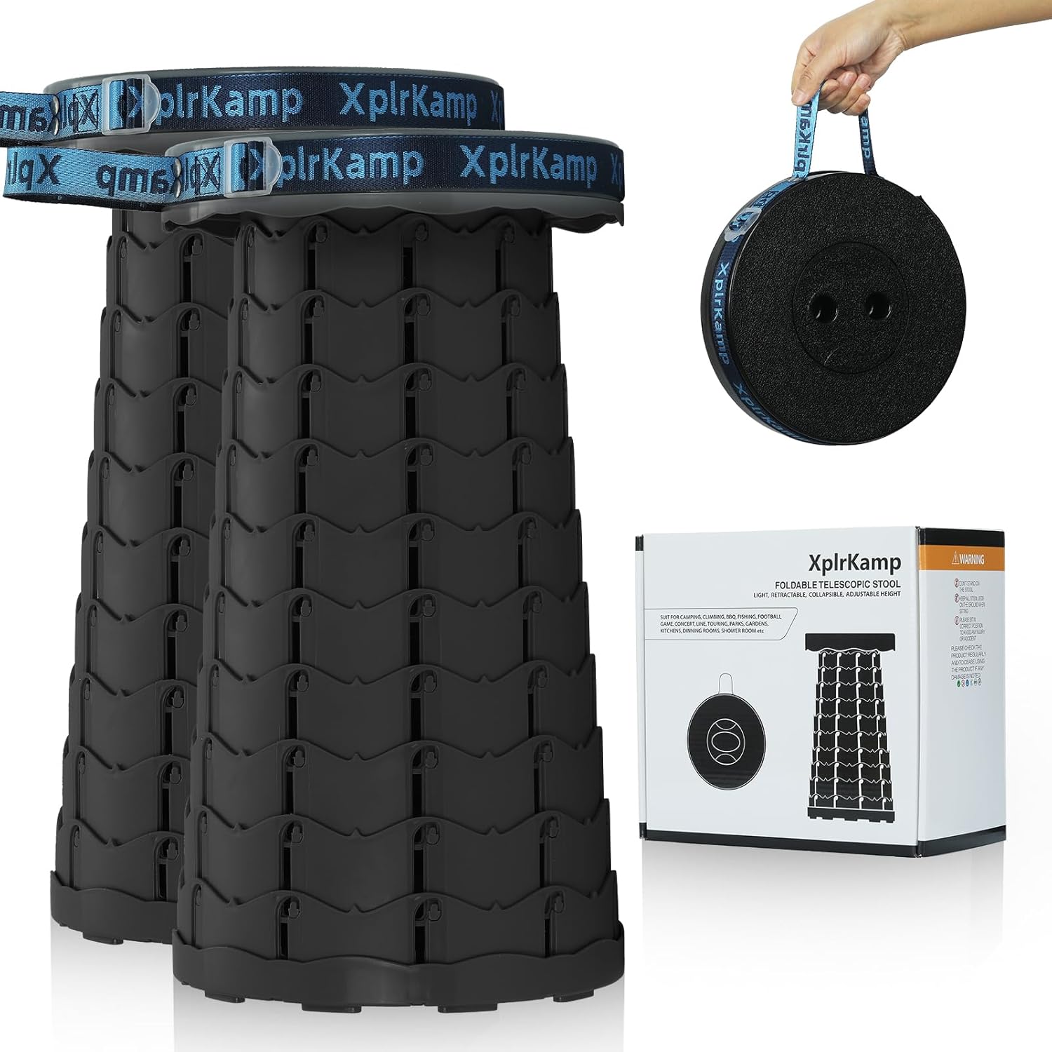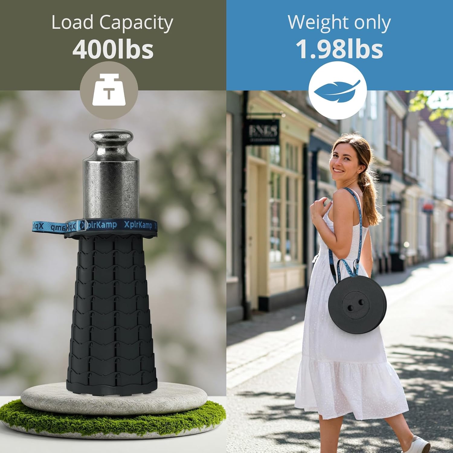 - Foldable & Portable: The XplrKamp foldable stool weighs only 1.98 lbs (0.9kg) with a collapsible size of 2.56"Γ9.84" (6.5Γ25cm).Features a 22-inch adjustable strap for shoulder carry or backpack attachment. Ideal as a camping stool for hiking, fishing,outdoor painting and picnics, while fitting seamlessly in cars, closets, or small spaces