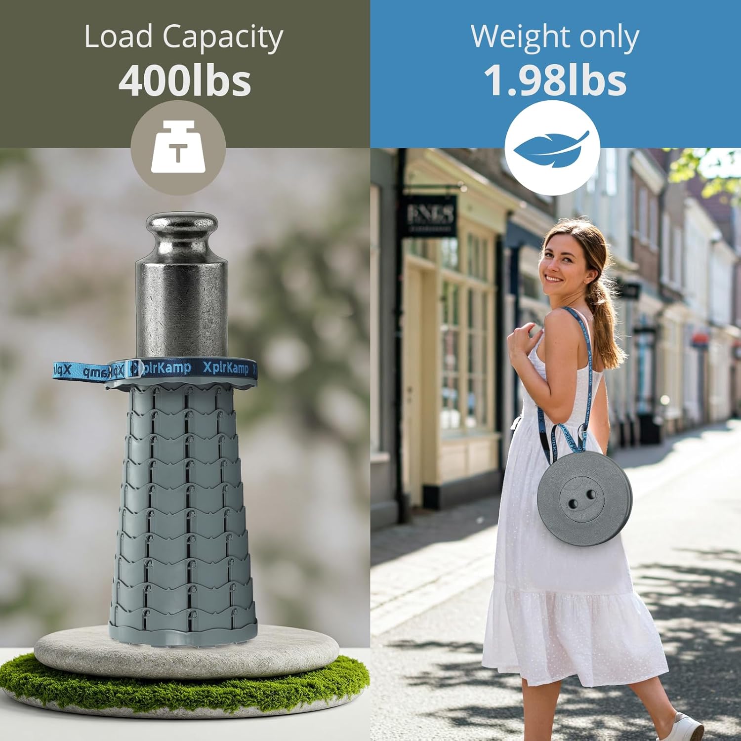 - Foldable & Portable: The XplrKamp foldable stool weighs only 1.98 lbs (0.9kg) with a collapsible size of 2.56"Γ9.84" (6.5Γ25cm).Features a 22-inch adjustable strap for shoulder carry or backpack attachment. Ideal as a camping stool for hiking, fishing,outdoor painting and picnics, while fitting seamlessly in cars, closets, or small spaces