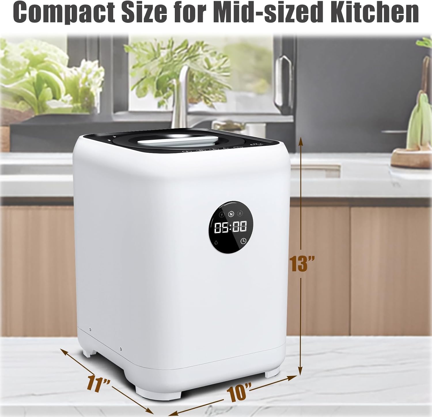 - Compact Size: Our electric kitchen compost bin is compact in size 10”L x 11”W x 13”H and exquisite in appearance, you can place the compost bin on your kitchen desktop, office and so on, perfect for small spaces.