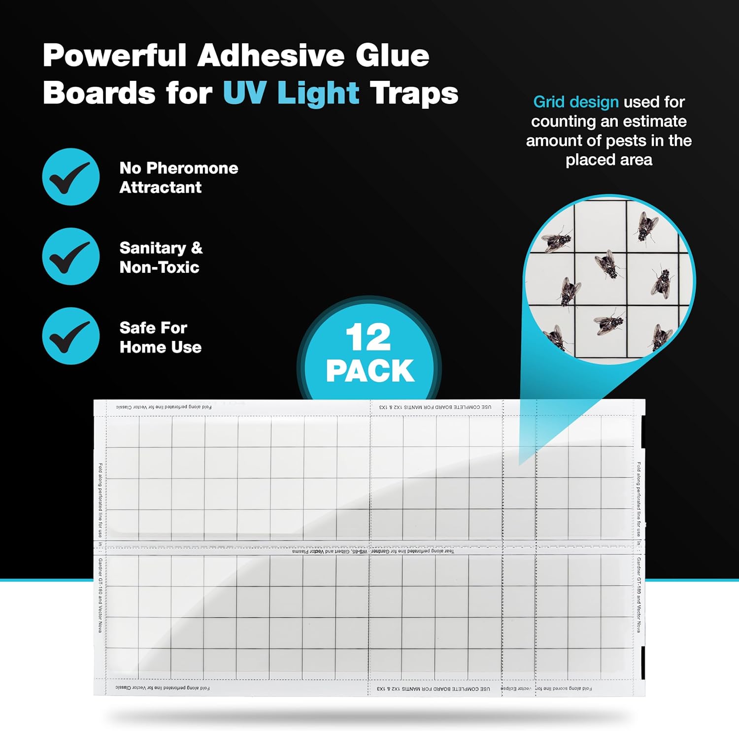 Catchmaster Vector Universal Replacement Glue Boards White, UV Light Fly Trap for Home, Unscented Gnat Traps for House, UV Lamp Insect & Mosquito Killer Refill, Adhesive Bug Light Boards, 12-Pack