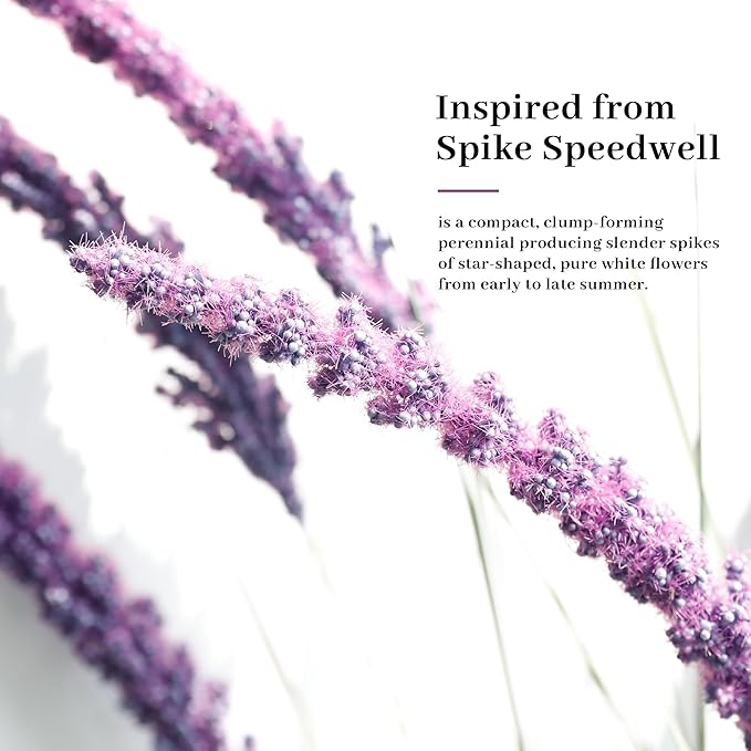 - Stunning All-Purple Spikelets Faux Veronica Design: This artificial Veronica Spiked Speedwell features stunning all-purple wheat-like spikelets paired with purple and green leaves, Inspired by the natural beauty of veronica spiked speedwell. Every detail, from the textured leaves to the delicate spikelets, is meticulously crafted, adding a touch of elegance to any space