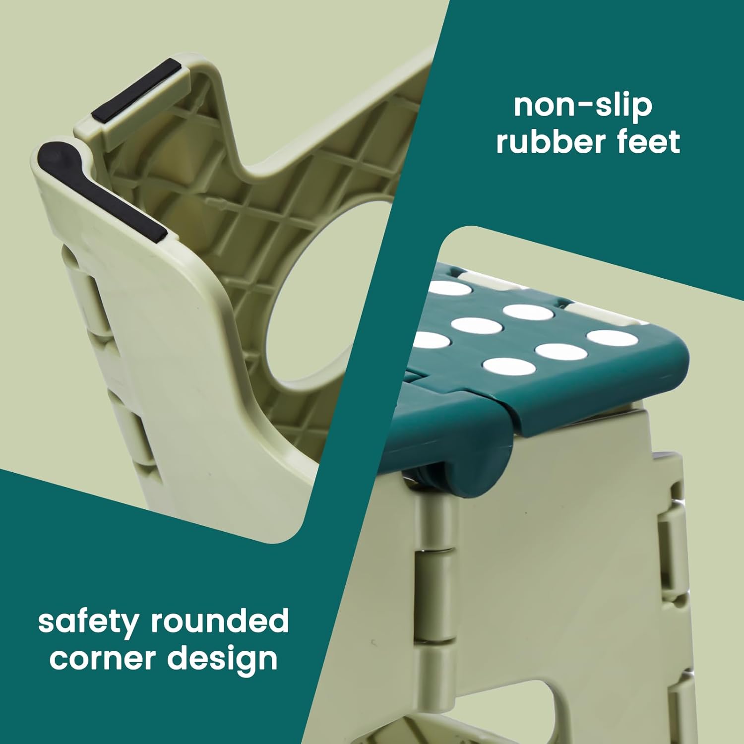- Safe For Kids and adult : Rubber foot grips, non-slip surface and round edges, support excellent traction for the collapsible folding step stool; ensure your safety by preventing unwanted slips