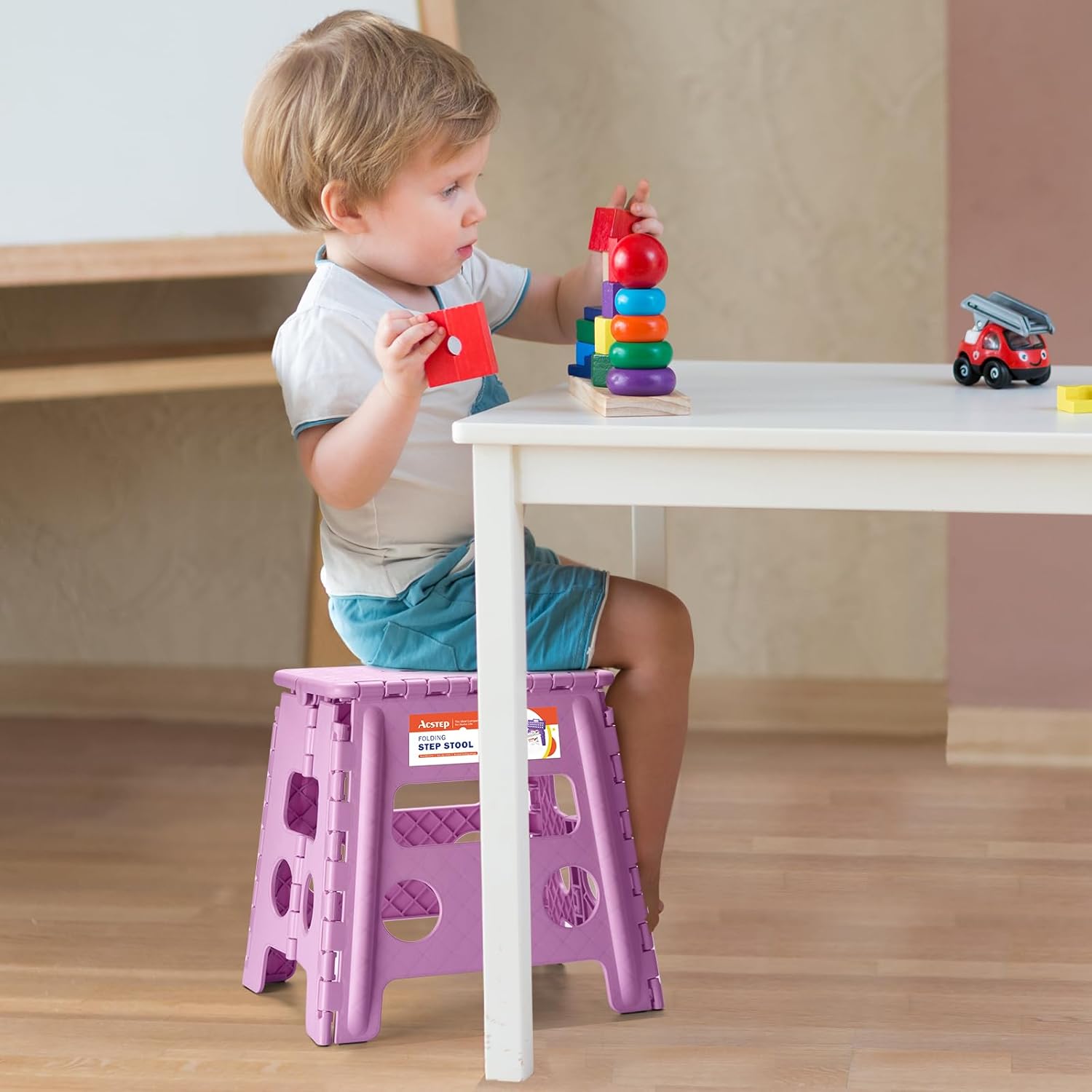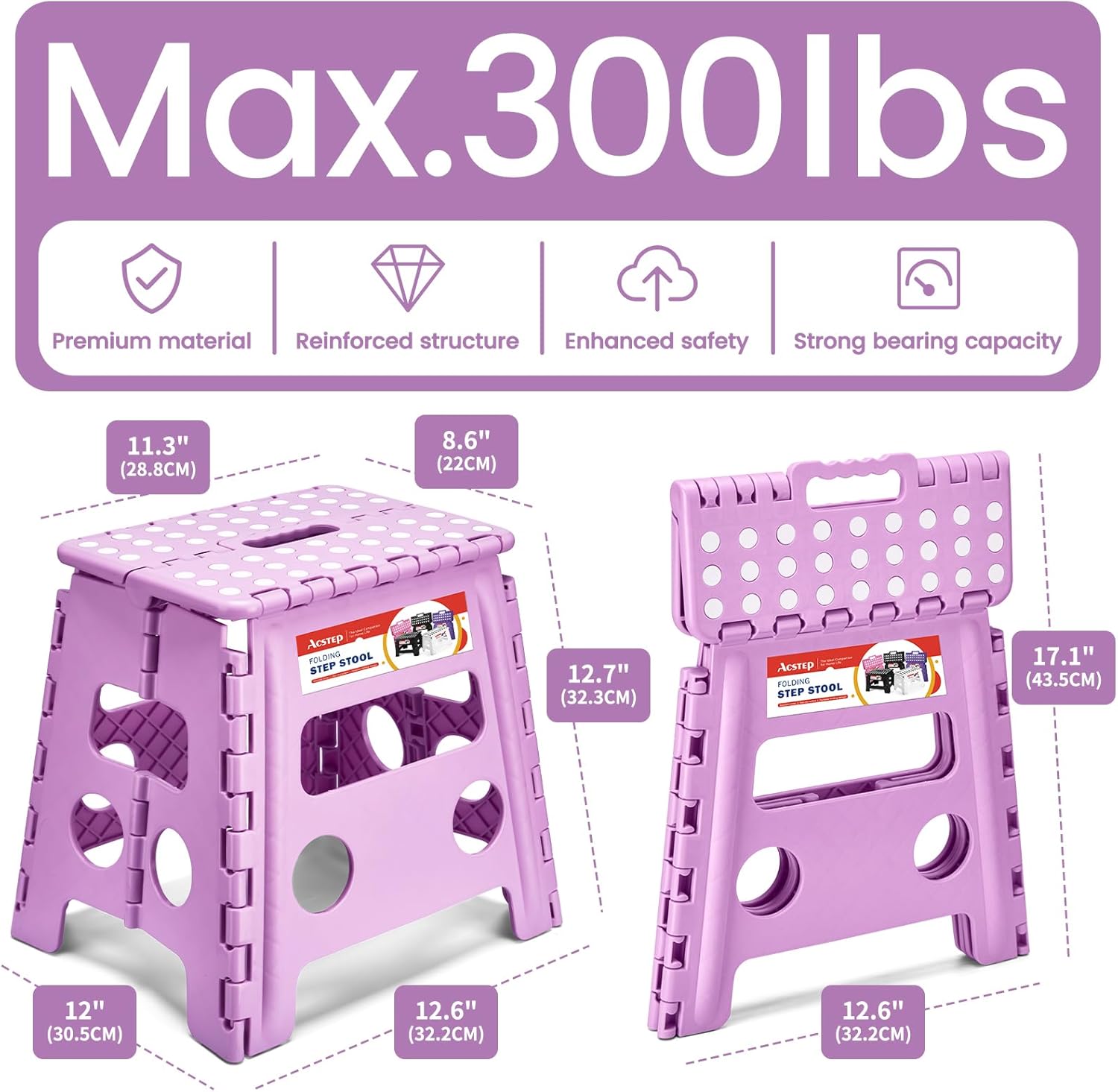 ACSTEP 13 Inch Folding Step Stool,Foldable Step Stools for Kids and Adults 300 LB Capacity, 300 LB Capacit Suitable for Kitchen Fishing (Light Purple)