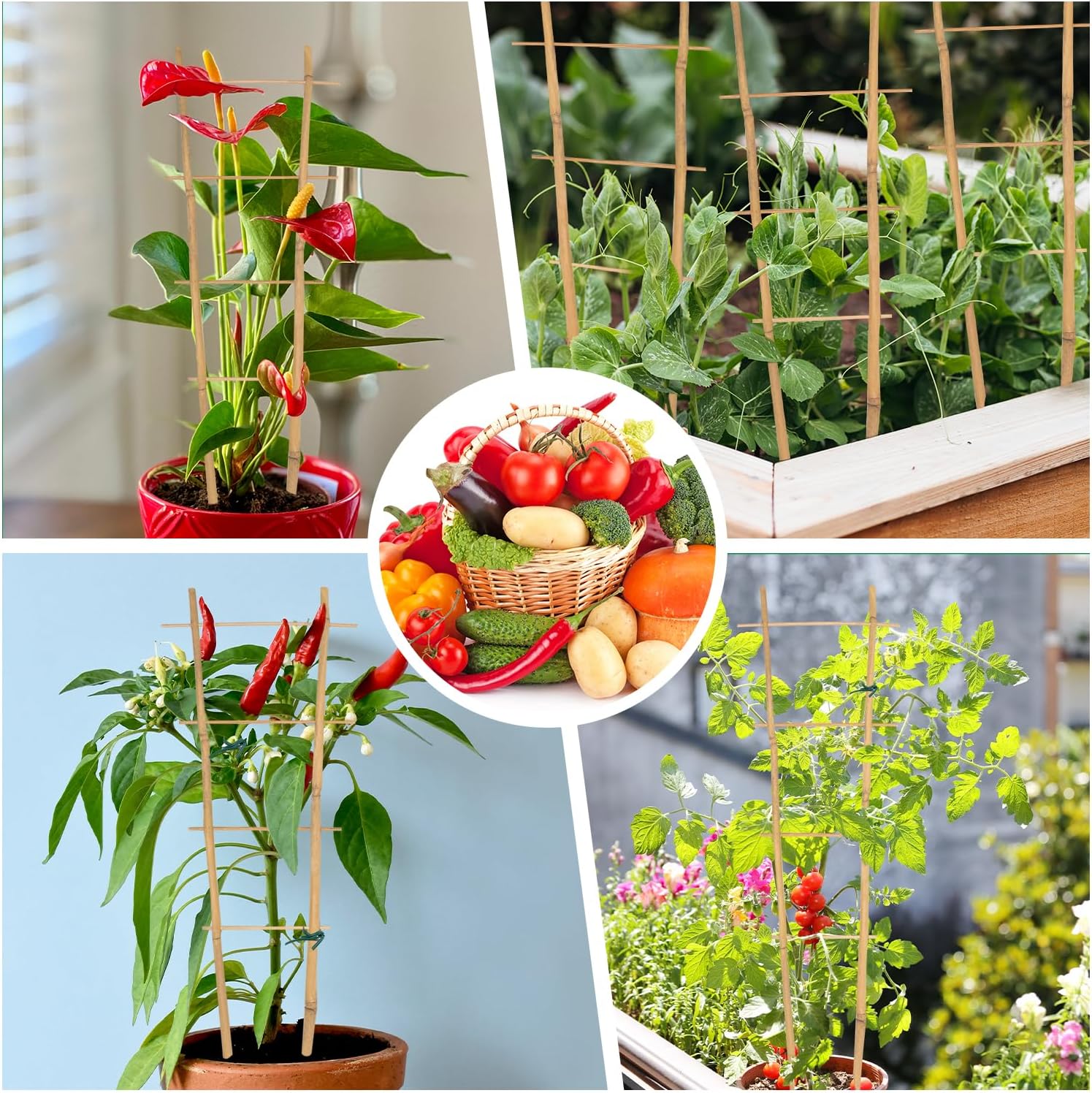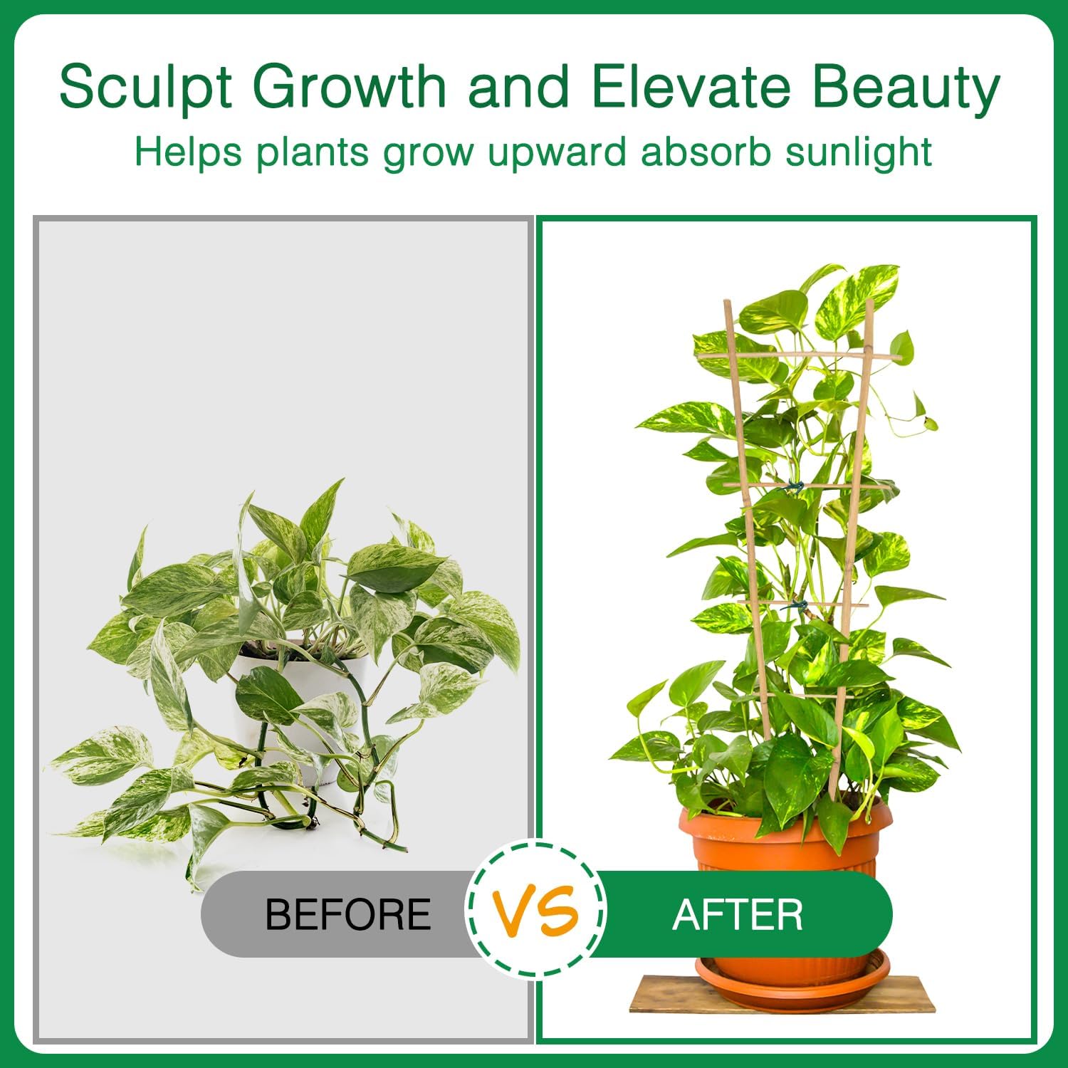 - 【Plant Growth Support】:Bamboo trellis provides reliable support for your climbing plants,designed to withstand wind and rain,it keeps your plants upright and prevents their stems from breaking.Whether you're using it as an indoor plant trellis for potted plants or a trellis for climbing plants,it will help your plants thrive,producing beautiful blooms and creating a stunning visual display.Plant trellis indoor helps potted plants grow upwards, allowing them to receive more sunlight.