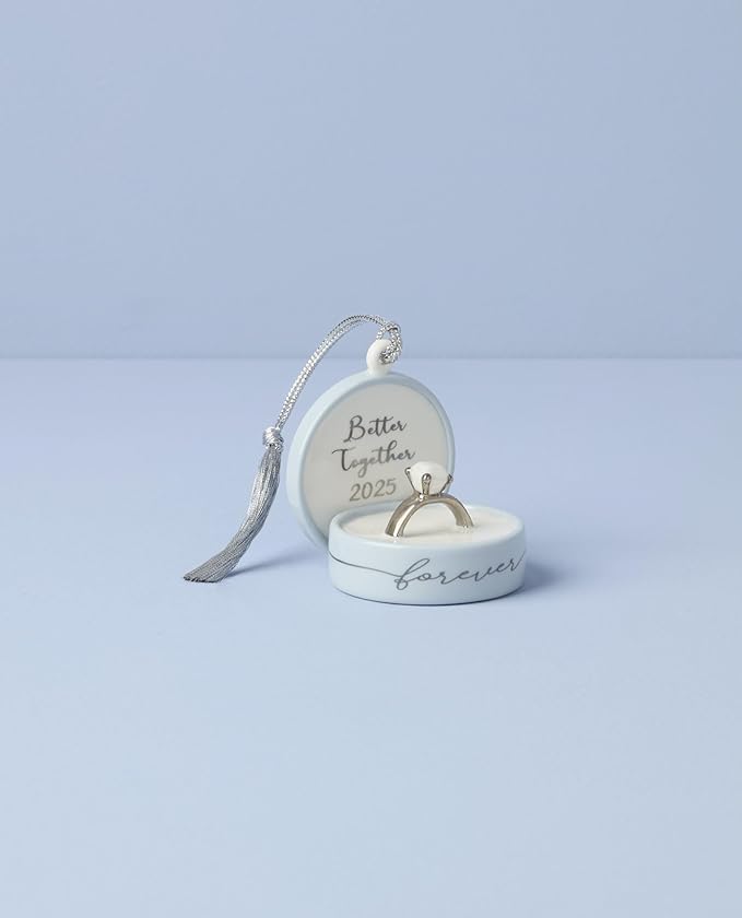 Lenox Ornament, 2025 Together Forever Porcelain Ring Box Ornament, Ring Box Design Christmas Tree Decoration with Silver Accents, Christmas Decor, Holiday Decor, Winter Decorations (Blue, 1 Piece)
