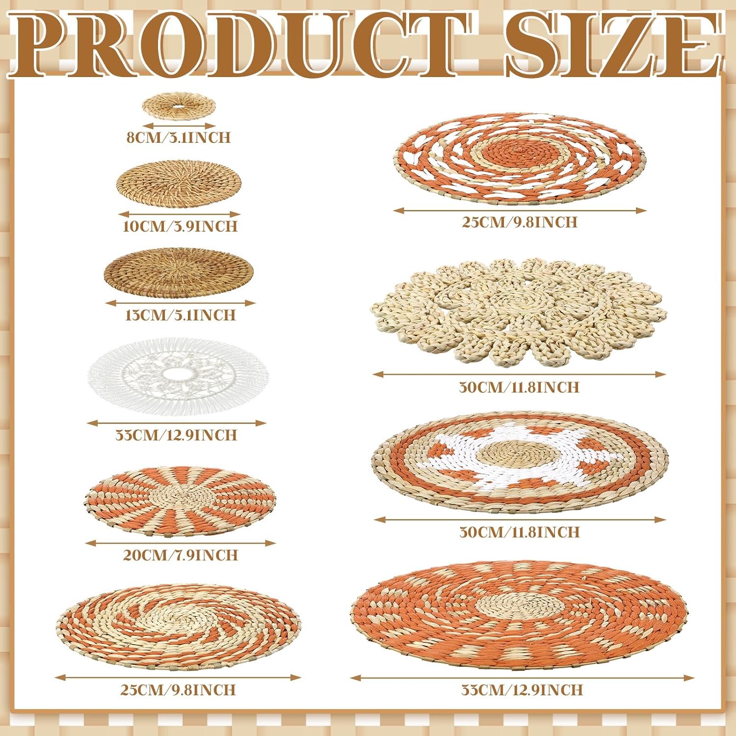- Wide Range of Applications: boho basket wall decor set as placemats, or as decorative baskets to store toys and accessories, the rustic basket wall art is suitable for many occasions, such as hotels, restaurants, living rooms, bedrooms, schools, stores, offices, dorms, shops, spring, summer and more, bringing you an elegant and classic feeling