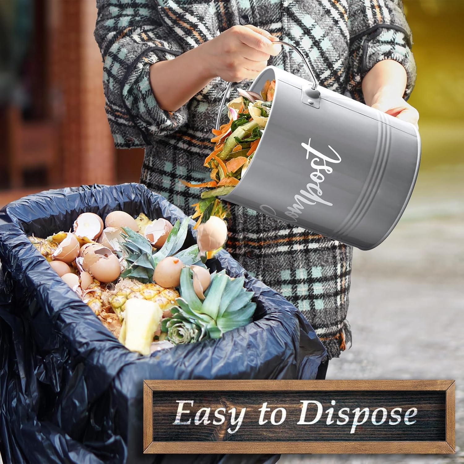 - Large Capacity Compost Bin: 1.3 gallons (7.1” dia./11” height) offers big enough space to collect your organic kitchen and food waste during the week. With this compost bin kitchen, you don't worry about bad smells into your home any more.