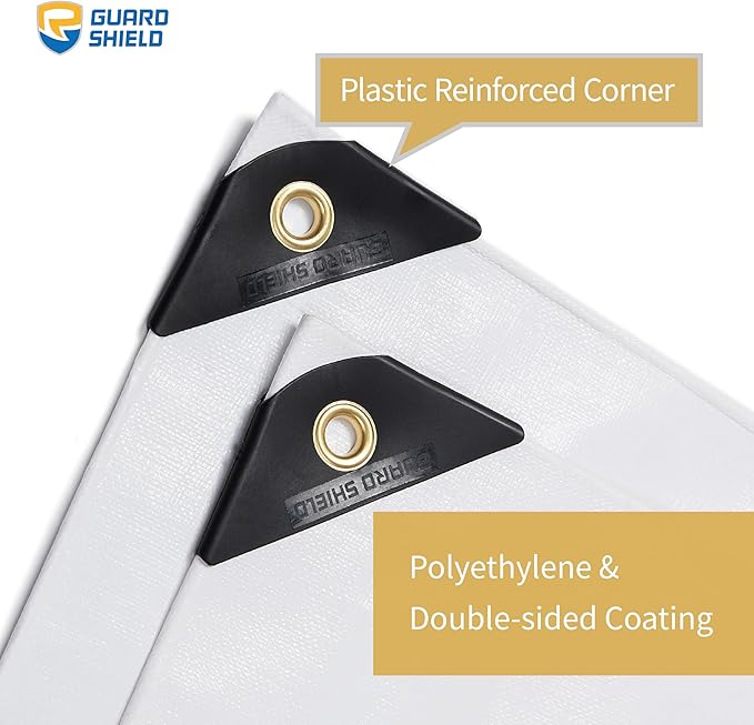 GUARD SHIELD Extreme Heavy Duty White Poly Tarp 20x20 Feet Cover Waterproof Tarps 20mil Thick UV and Tear Resistant Tarpaulin