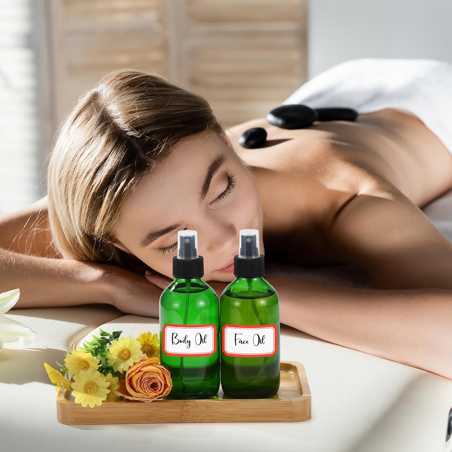 Norme 12 Pcs 8 oz Glass Spray Bottles with Funnels and Labels Refillable Cosmetic Empty Spray Bottles with Sprayer Containers for Essential Oil Cleaning Solutions (Green,Stylish)
