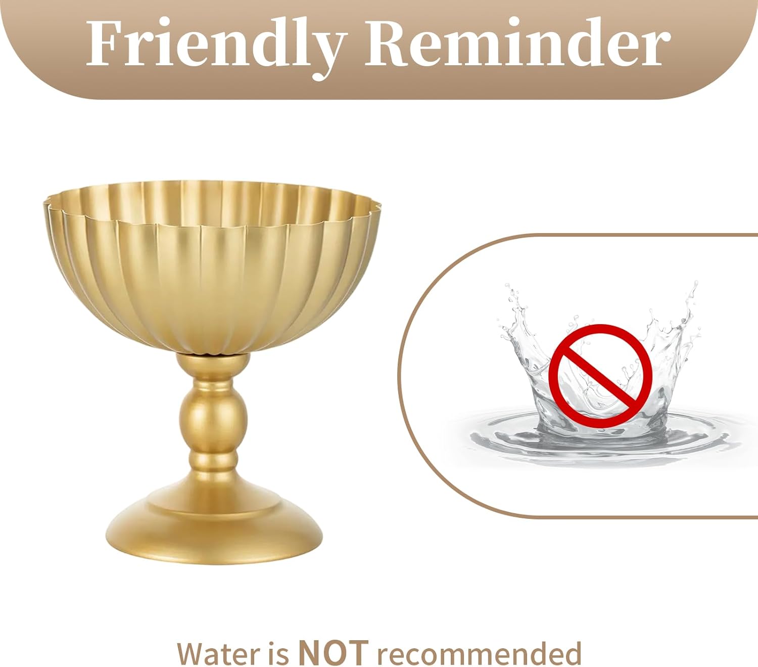 - Sturdy Metal Urn Vases: Sziqiqi unique golden flower vase pot is crafted from high quality metal; Each urn planter is expertly honed and polished, ensuring not only a sophisticated aesthetic but also exceptional longevity; NOTE: The compote vase is not recommended for holding water
