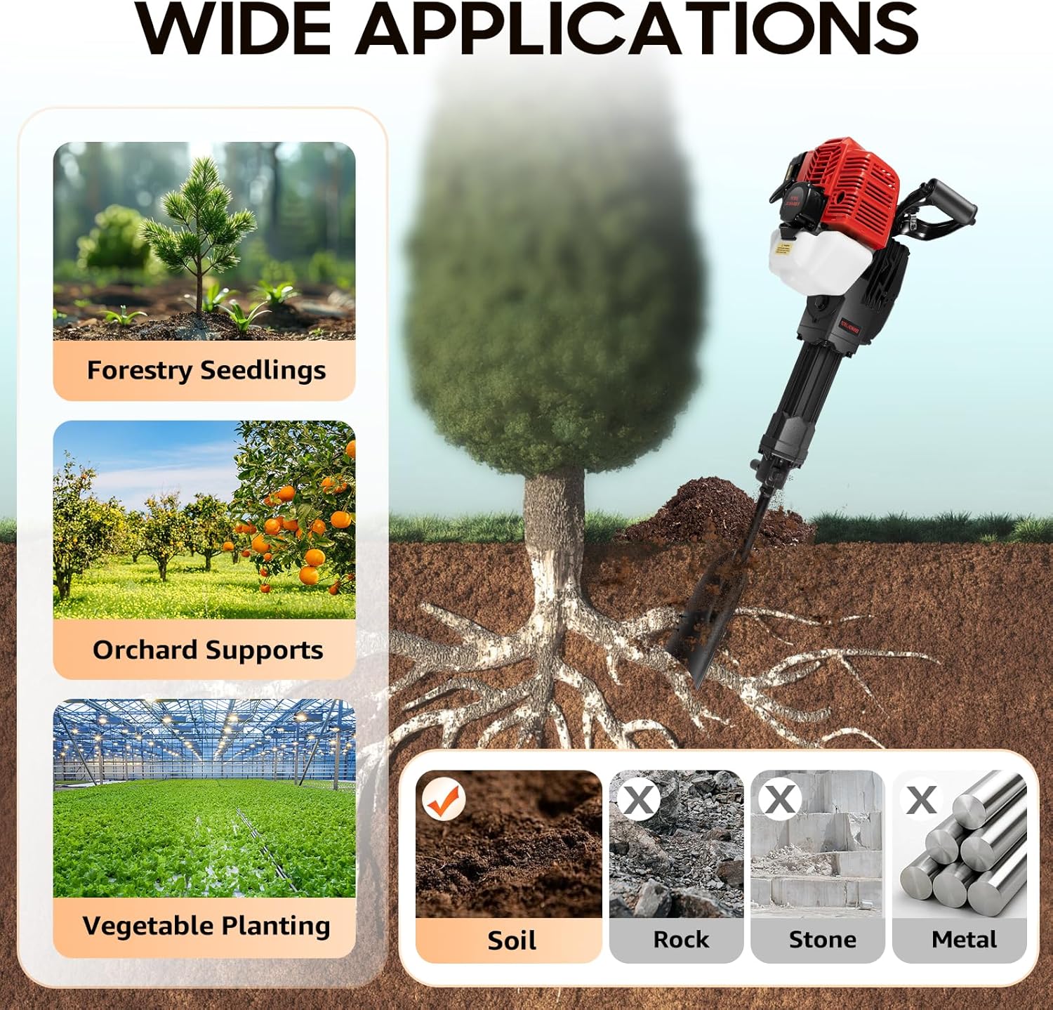 - 【Powerful Performance】 Featuring a 1900W 2-stroke engine, this Tree Root Remover offers high power and speed, reaching up to 6500 rpm, making tree root removal and soil excavation effortless and efficient.