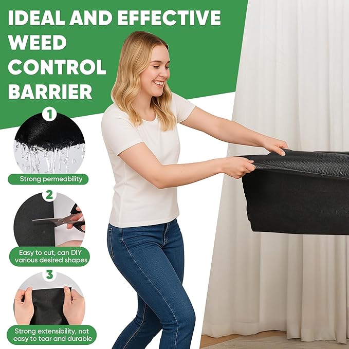 - Promote Plant Growth: Our heavy duty landscape fabric design has many small holes that allow more water and nutrients to penetrate into the soil, providing an ideal growth environment for plants