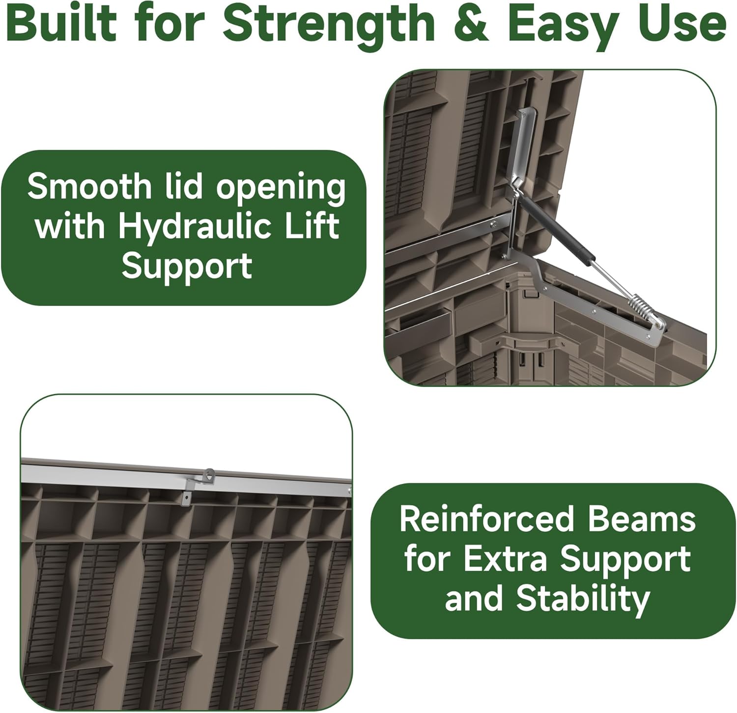 - STURDY AND RELIABLE BUILD:Designed with internal reinforcement, this deck box offers superior strength and stability compared to similar products. The robust panel construction and precise assembly help maintain its shape over time.