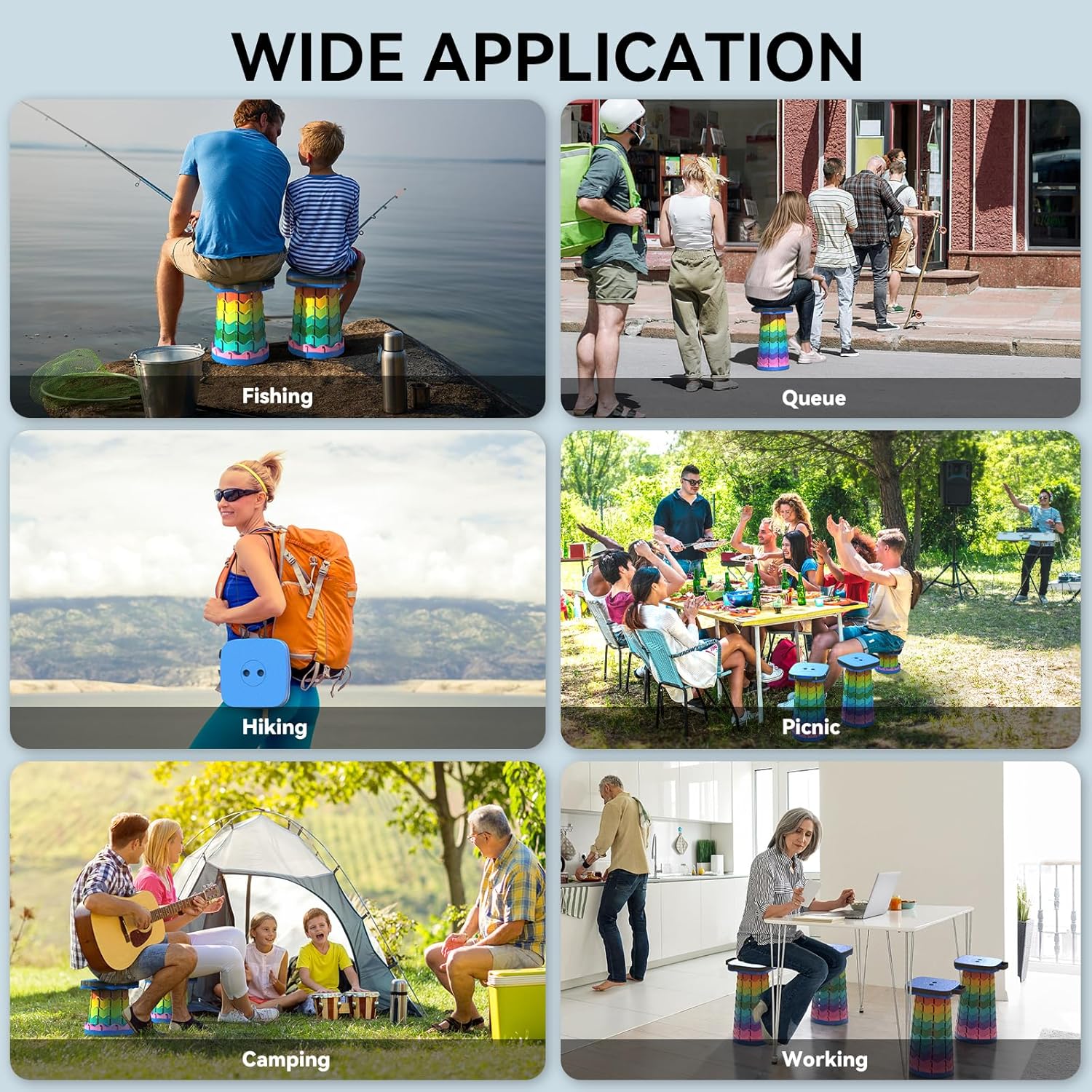 Upgraded Collapsible Stool, Portable Folding Stool, Telescoping Camping Chair with Max Load Capacity 485lbs, Square Retractable Stool for Camping Gardening Fishing Hiking BBQ [Rainbow+Blue]