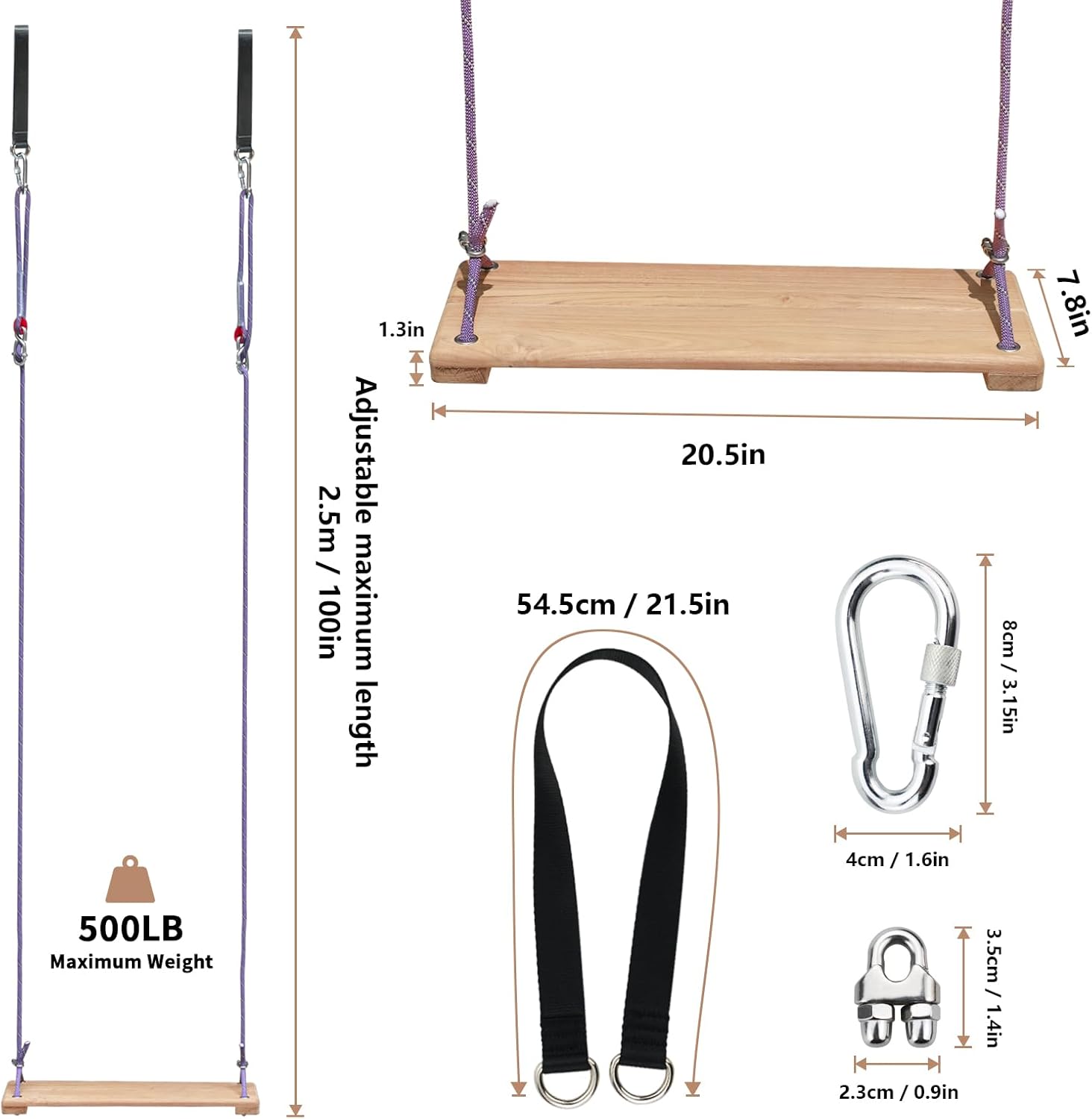 - Adjustable Height–With a rope length of 100 inches, equipped with a figure-8 buckle, rope clamps, and hooks, the swing height can be freely adjusted based on different usage scenarios. It suits people of various heights, allowing your family to fully enjoy the fun of swinging.