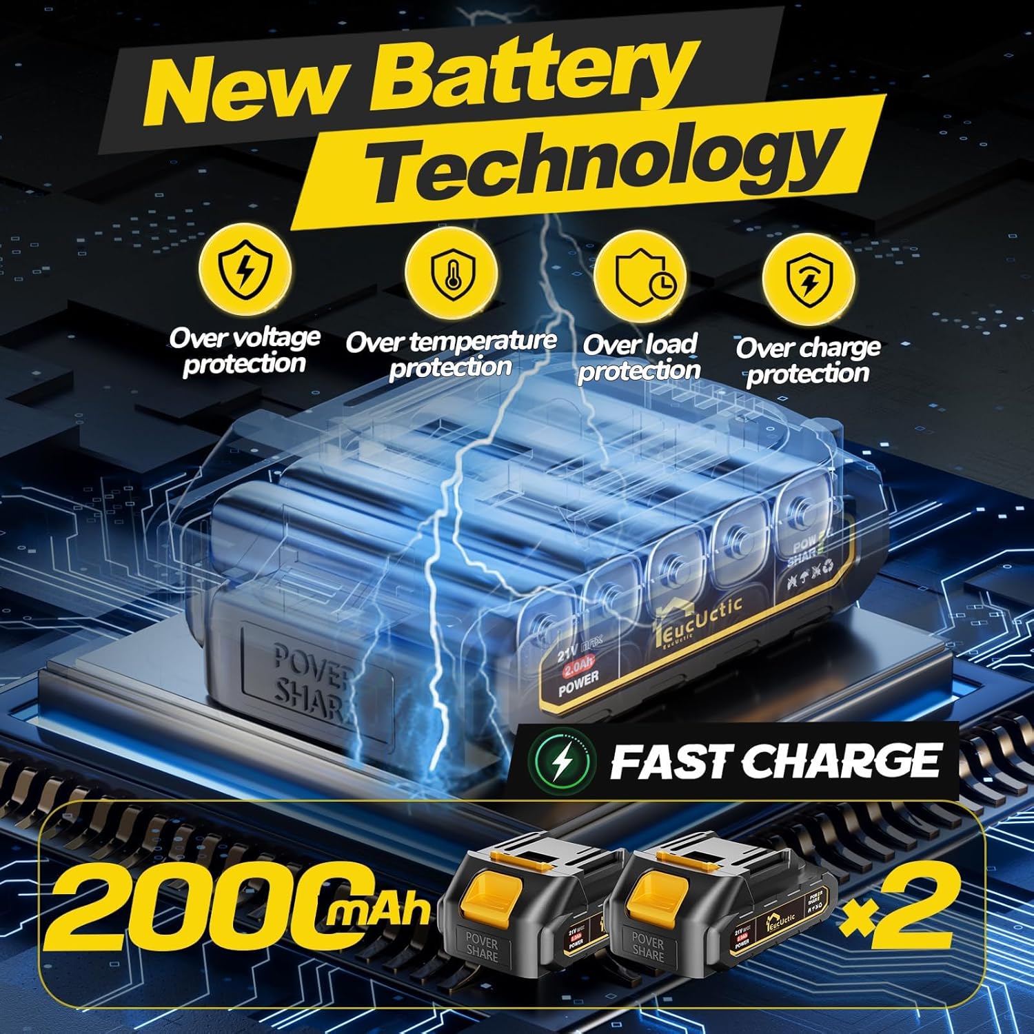 - 4000 MAH BATTERY & FAST CHARGING: Next-gen 21V 2000mAh lithium batteries deliver 25-45 minutes runtime (2-pack BATTERY). The handheld chainsaw battery powered system supports quick swaps for uninterrupted yard work, emergency repairs, or off-grid adventures. (Chainsaw for Makita Battery 18V)