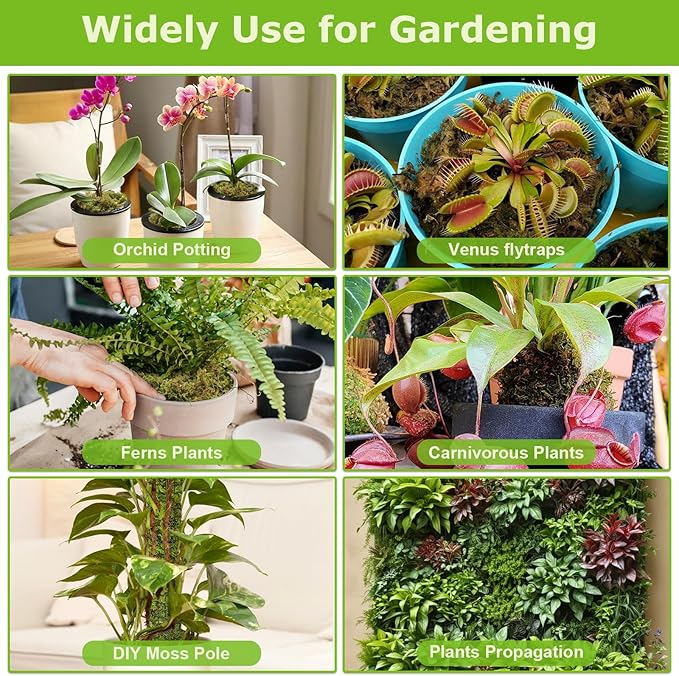 - Wide Applications: Our orchid moss for repotting is especially suitable for plants that prefer a moist environment, such as orchids, ferns, succulents, insectivorous plants and tropical plants. It can also be used as a bedding substrate to provide a comfortable, moist habitat for pet reptiles, promote shedding or improve skin health.