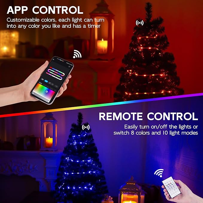 - 🎄Smart RGB Lights: Equipped with 80 smart RGB lights (Batteries not included) that can be controlled via an app, this tree offers endless customization options. Enjoy a wide range of colors and lighting effects to match your mood or occasion, enhancing the ambiance of your home effortlessly.
