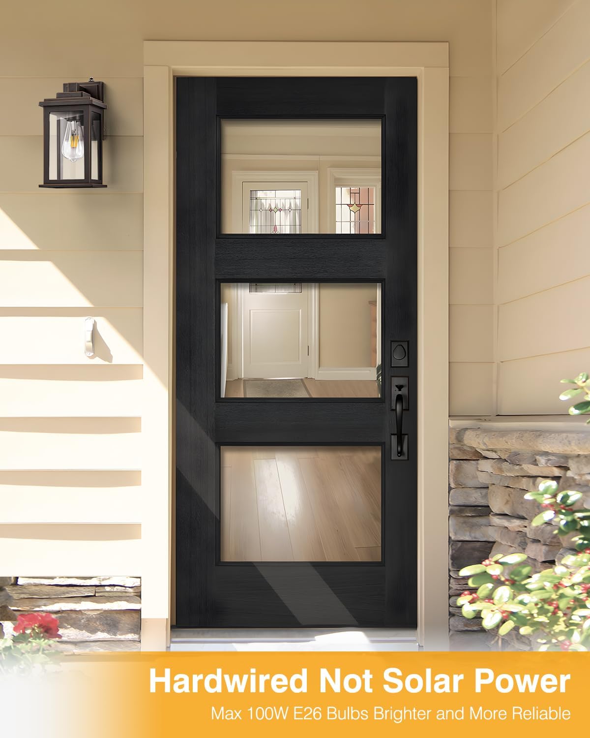 - đ [Easy Installtion and E26 Socket] Tired of high electrician bills? Our pre-assembled outdoor lanterns for porch install in 3 steps: attach the bracket, connect wires, secure with screwsâdone. UL-certified and hardwired keep your outdoor lamp light on even in bad weather. â Our outdoor light fixture made in Aluminum weighs only 3.44 pounds, making installation a breeze! ⥠Bottom opening allows you to easily change bulbs while maintaining good heat dissipation for longer bulb life. â˘Color-coded wiring labels - allows for easy installation and DIY even if you are not an electrician. Dimmable LED bulbs or incandescent bulbs are recommended to avoid flickering issues.(Bulb not included)