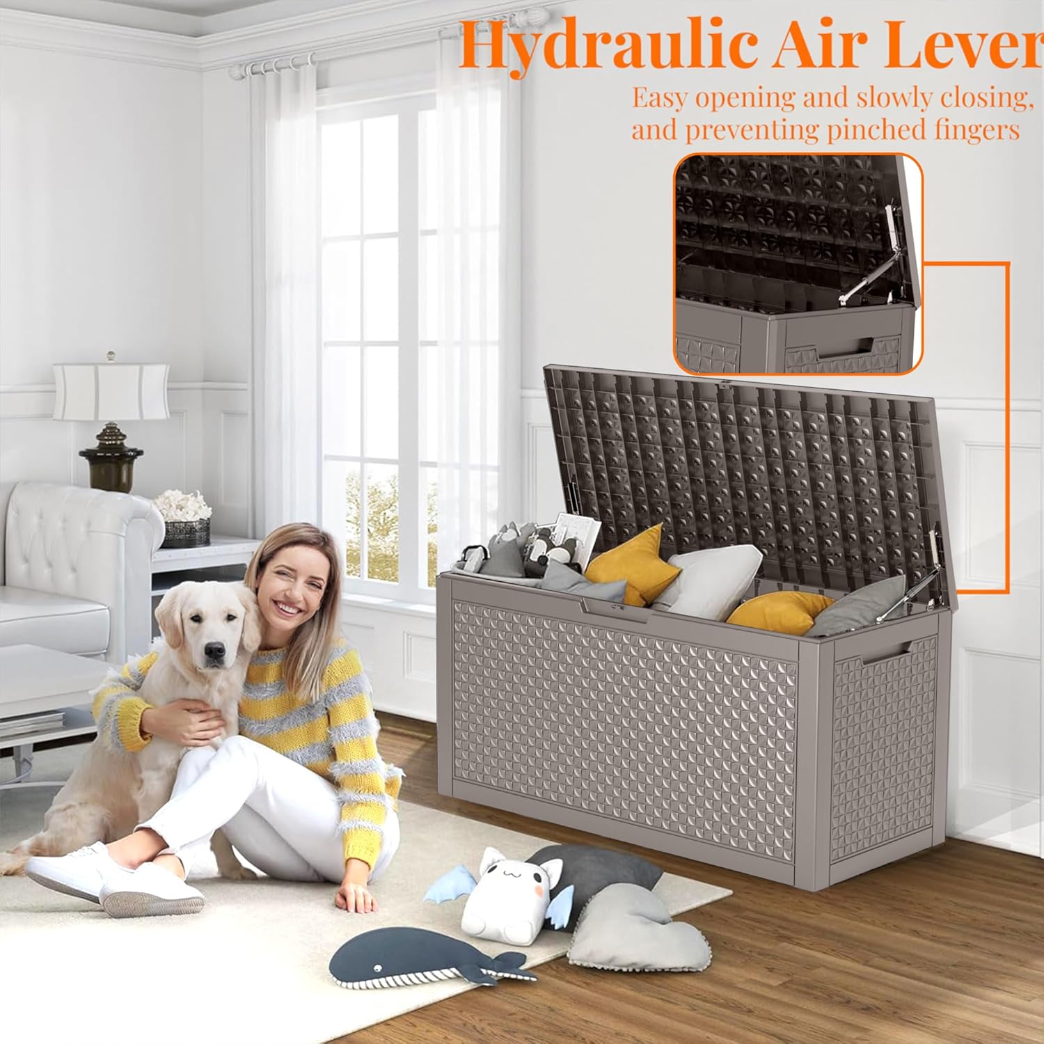 - ADAPTABLE TO VARIOUS SCENES: Whether used as an indoor laundry storage chest or an outdoor deck box container for items like outdoor cushions, garden tools and pool accessories, this patio storage box provides abundant space. It's also versatile as a side table, yard seat, storage bench, or footrest