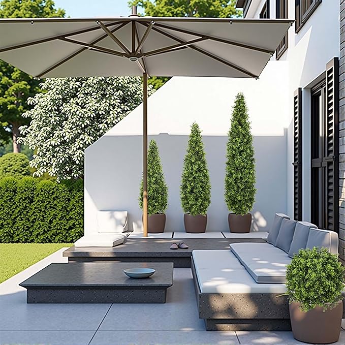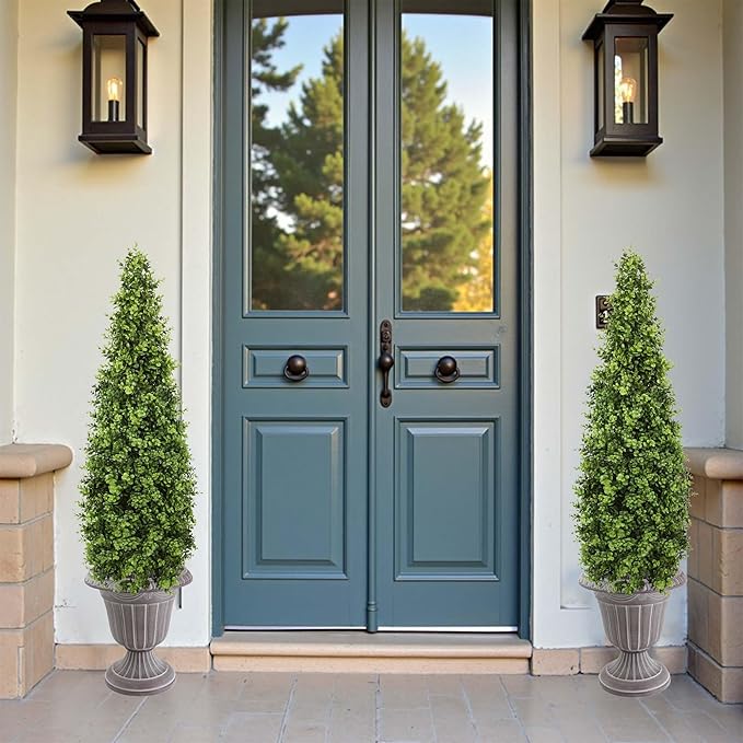 - [Perfect Decoration]: Faux Boxwood topiary tree is suitable for both indoor or outdoor use. Artificial topiary tree are perfect for your office, home, desk, bedroom, living room, bathroom, kitchen, farmhouse, balcony or wherever you want to put it.