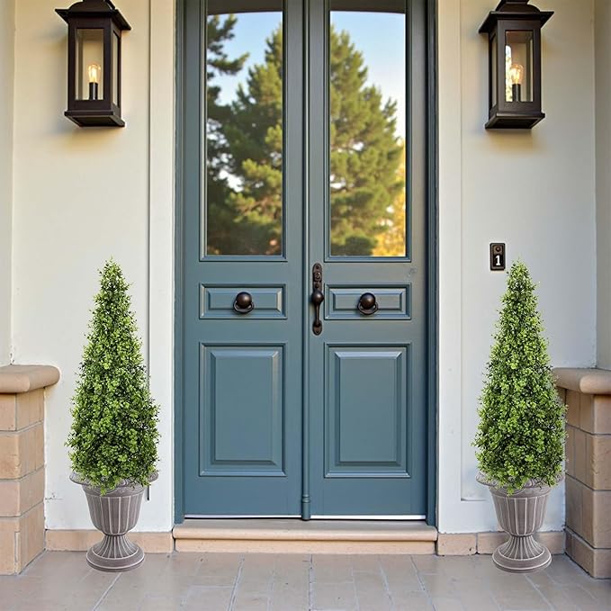 - [Perfect Decoration]: Faux Boxwood topiary tree is suitable for both indoor or outdoor use. Artificial topiary tree are perfect for your office, home, desk, bedroom, living room, bathroom, kitchen, farmhouse, balcony or wherever you want to put it.