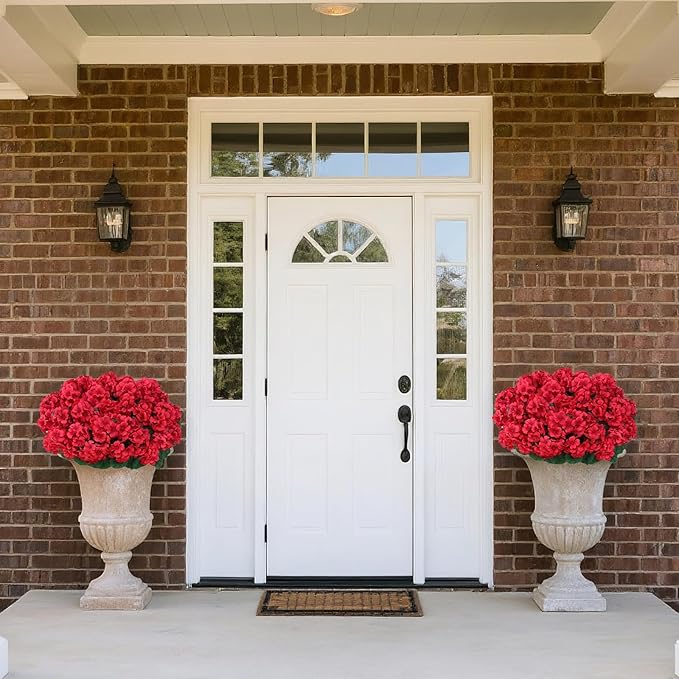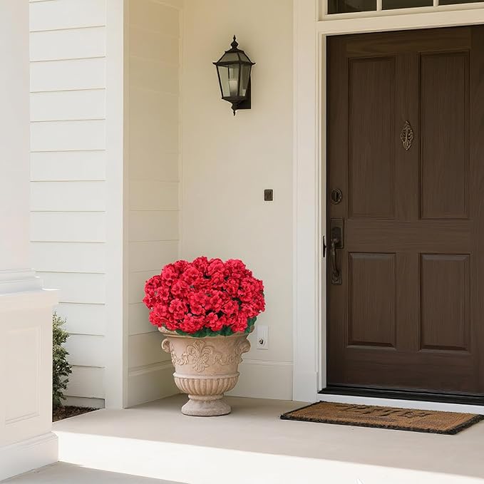 - Perfect Size: Artificial geraniums stand at approximately 18 inches tall, with each boasting 5 lush, full-bodied flowers. Our geraniums have been designed to feature even larger dimensions and a more abundant appearance, catering to all your decorative needs for the pots at your doorstep.