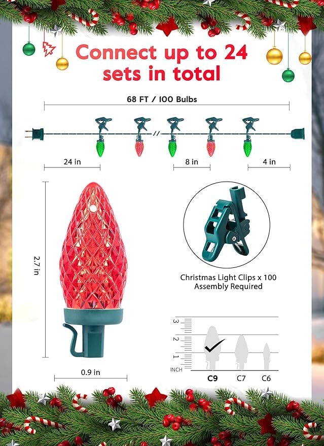 - Special Feature : UL Certified LED C9 String Lights, Waterproof, Connectable, Christmas Tree Decorations