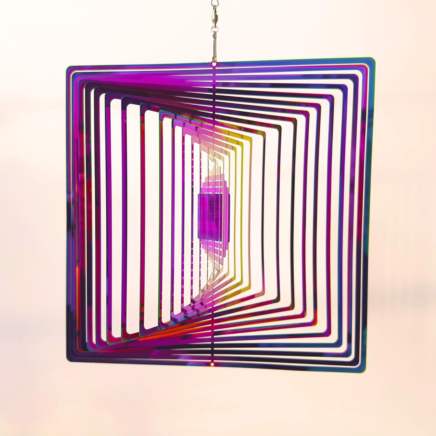 Wind Spinners Outdoor, 3D Maze, Square, Gradient Multicolor, 10 inches Stainless Steel Metal, Hanging Wind Spinners, Garden, Yard Décor, Outside, Gifts for Women Mom Wife