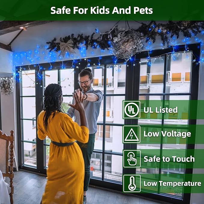 - Year-round blue charm: Our blue Christmas LED lights suit every season—Christmas, Thanksgiving, birthdays, weddings, or summer evenings outdoors. The timeless blue glow creates a peaceful, elegant mood indoors and out, making them ideal for year-round gatherings. Built as all-weather Christmas lights, they keep shining through rain or frost. Plus, if you need help, our responsive customer service team is ready to assist with product questions or setup guidance