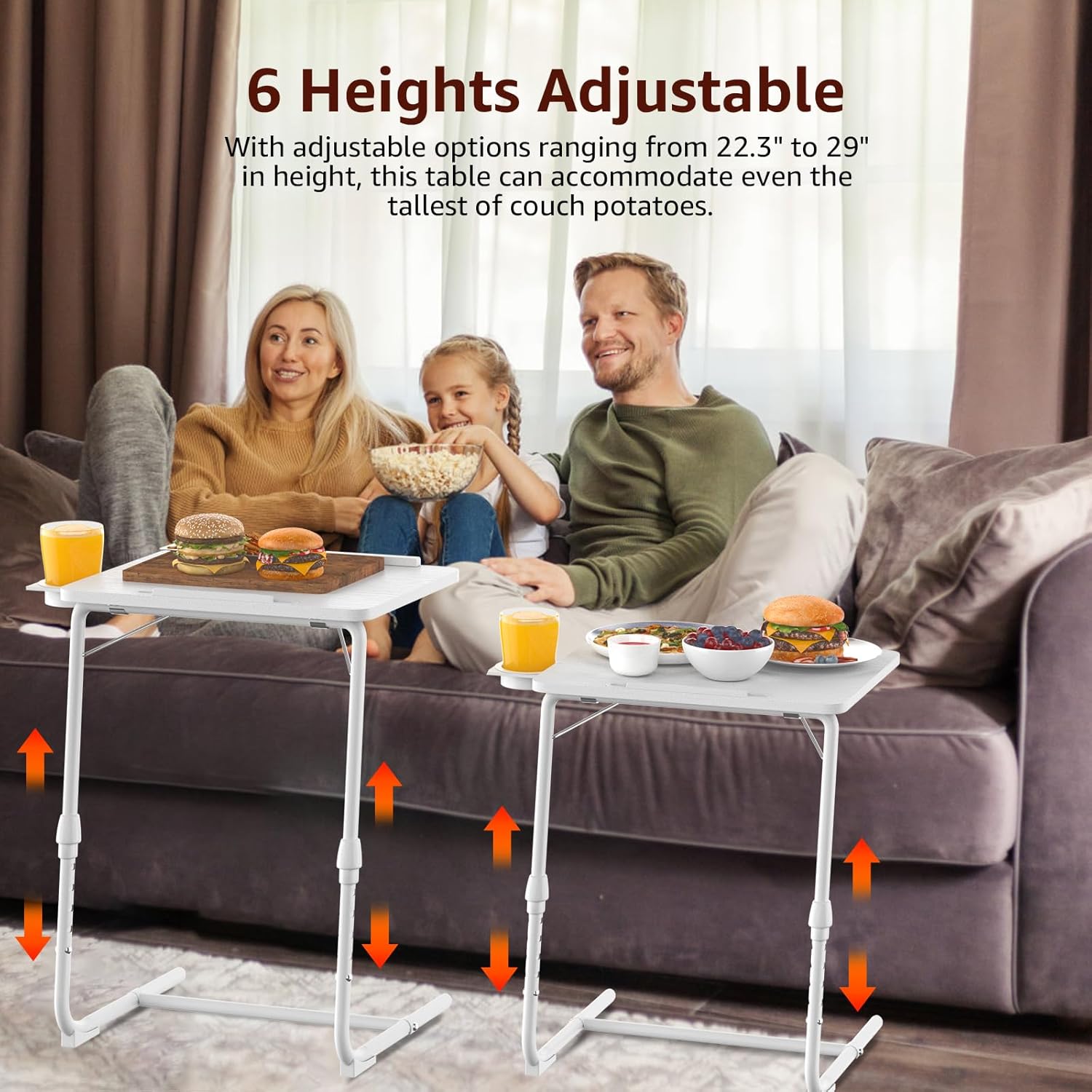 TV Trays Set of 4 - Folding TV Tray Adjustable Dinner Trays for Eating On Couch Wooden Tables Mate Stand Foldable White Desk with Cup Holder Portable
