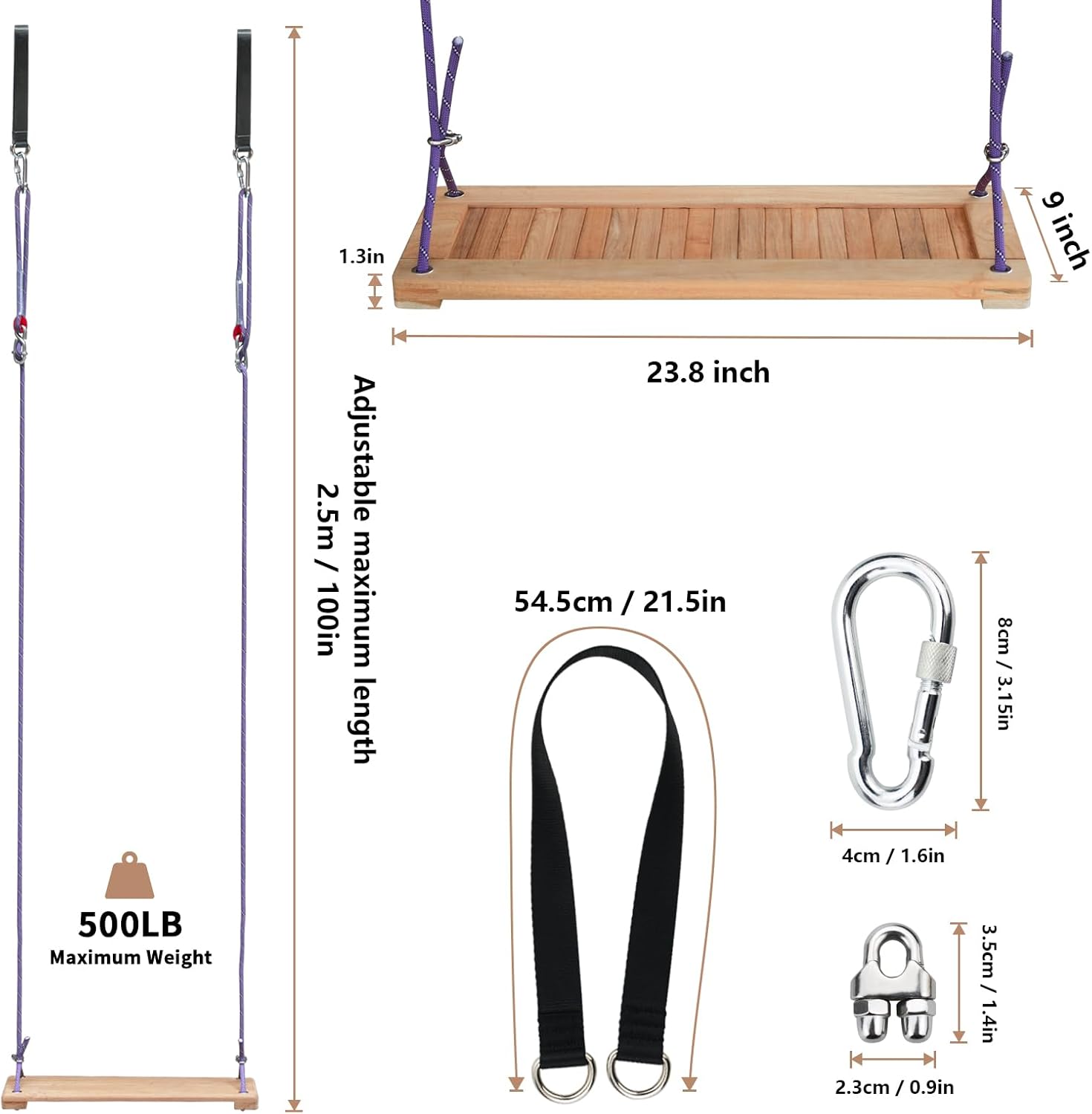 - Safety You Can Count On: The included ropes are as tough as they come, meeting professional climbing rope standards for strength. We’ve added heavy-duty thimbles, stainless steel grommets, and reinforced carabiners, all designed to withstand up to 500 pounds of weight! Plus, each wooden plank is carefully sanded to keep those swings smooth and safe.