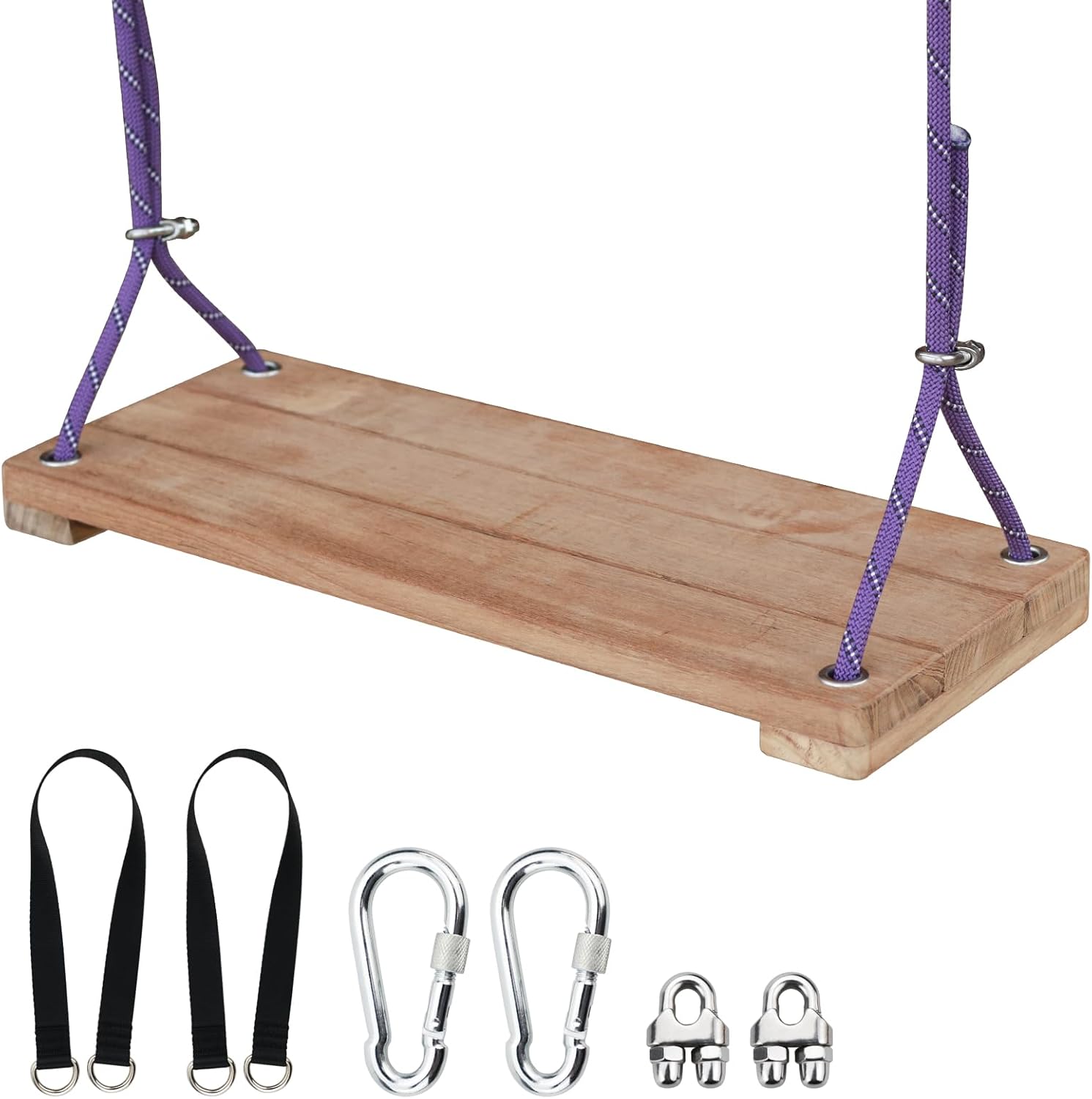 Teak Wood Swing 18.6"x7.6" - Outdoor Wooden Tree Swing Seat for Adults & Kids, Backyard Wood Swings with Height Adjustable Design