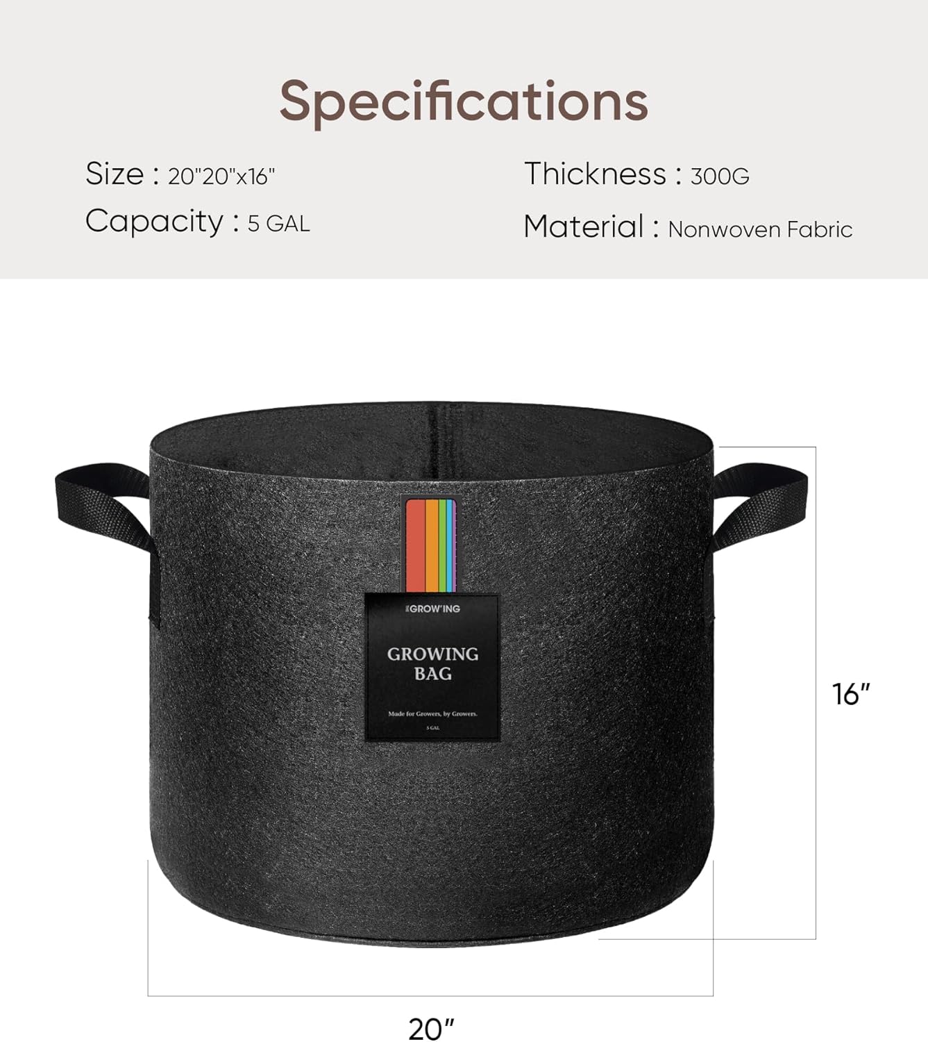 - Durable Fabric Material: THE GROWING Grow Bag is made from 300G thickened non-woven fabric, which is eco-friendly and BPA-free. It is wear-resistant, washable, easy to clean, and reusable. After use, simply clean it, let it dry, and fold it for storage—making it an ideal choice for sustainable gardening.