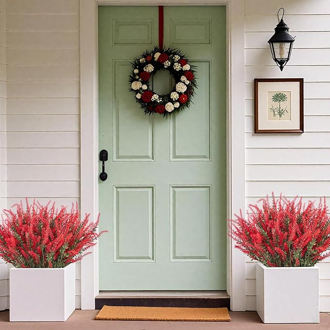 Ouddy Decor 12 Bundles Artificial Lavender Fake Flowers Faux Plastic Plants for Home Wedding Kitchen Garden Patio Window Box Office Table Centerpieces Indoor Outdoor Decor, Red