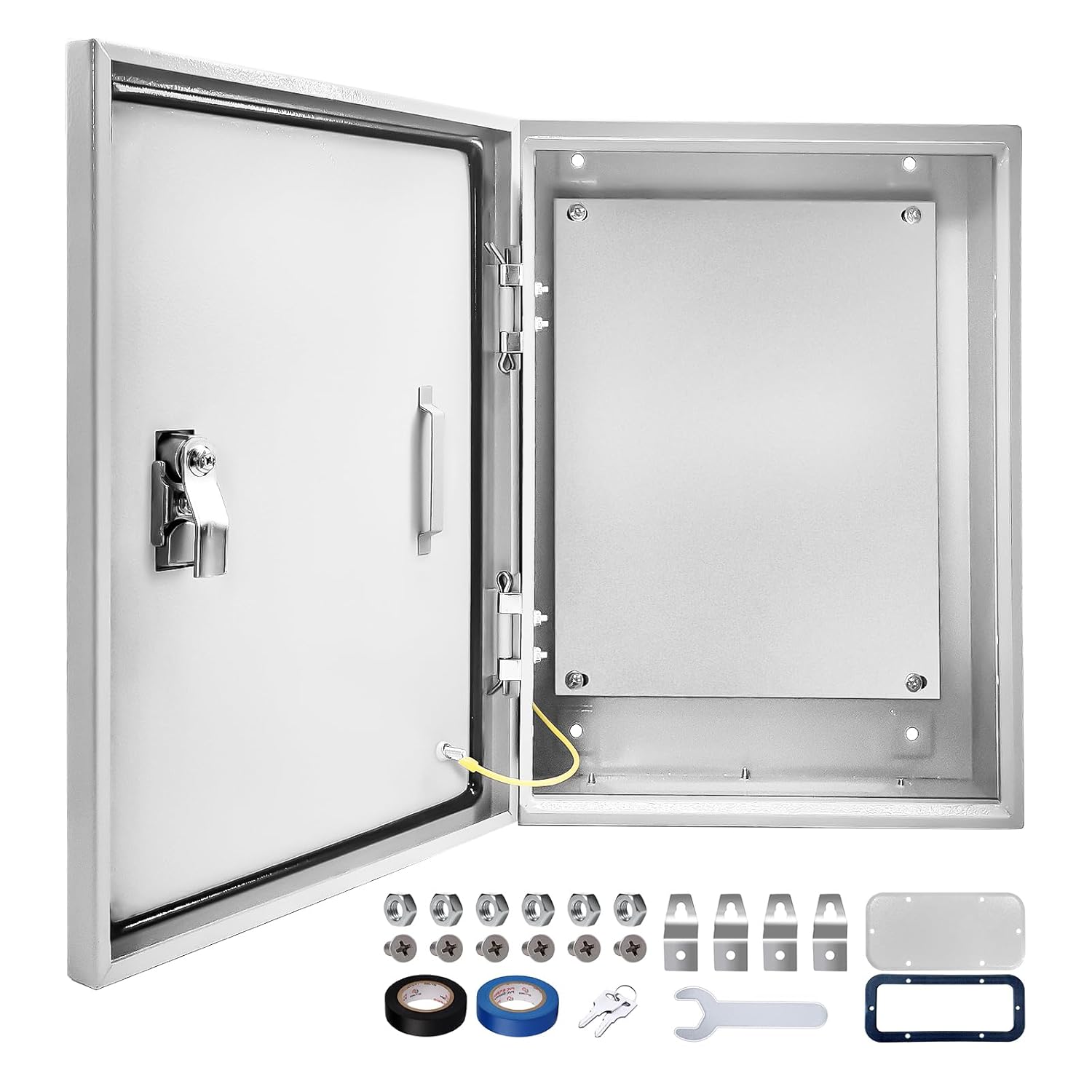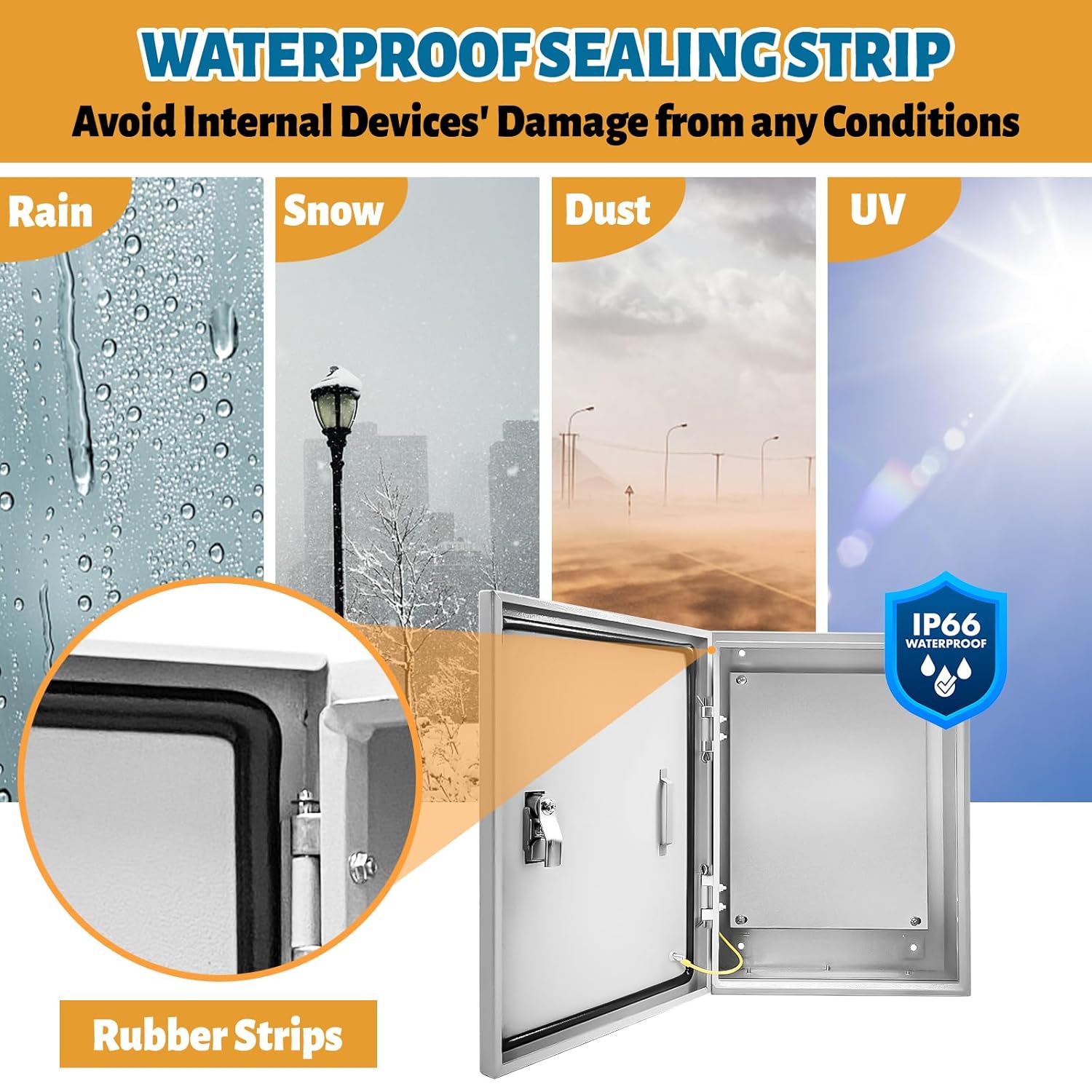 Outdoor Electrical Box 24 x 16 x 12''D NEMA 4X Enclosure Steel Box, Waterproof & Dustproof Outdoor/Indoor Lockable Electrical Junction Box, with Mounting Plate