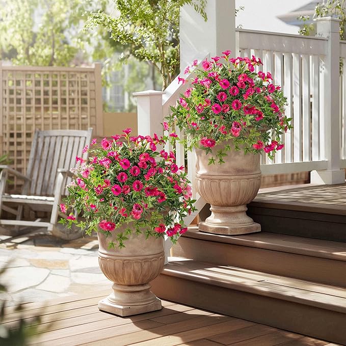 - Versatile for Outdoor Scenarios, Easy to Match: These fake outdoor flowers are suitable for various outdoor occasions, such as garden landscaping, patio decoration, porch arrangement and even outdoor wedding venues. There flowers artificial faux flowers can be paired with flower pots, hanging baskets or flower arches at will, easily creating a vibrant outdoor atmosphere. Meanwhile, as practical fake flowers, they save you the trouble of daily watering and pruning.