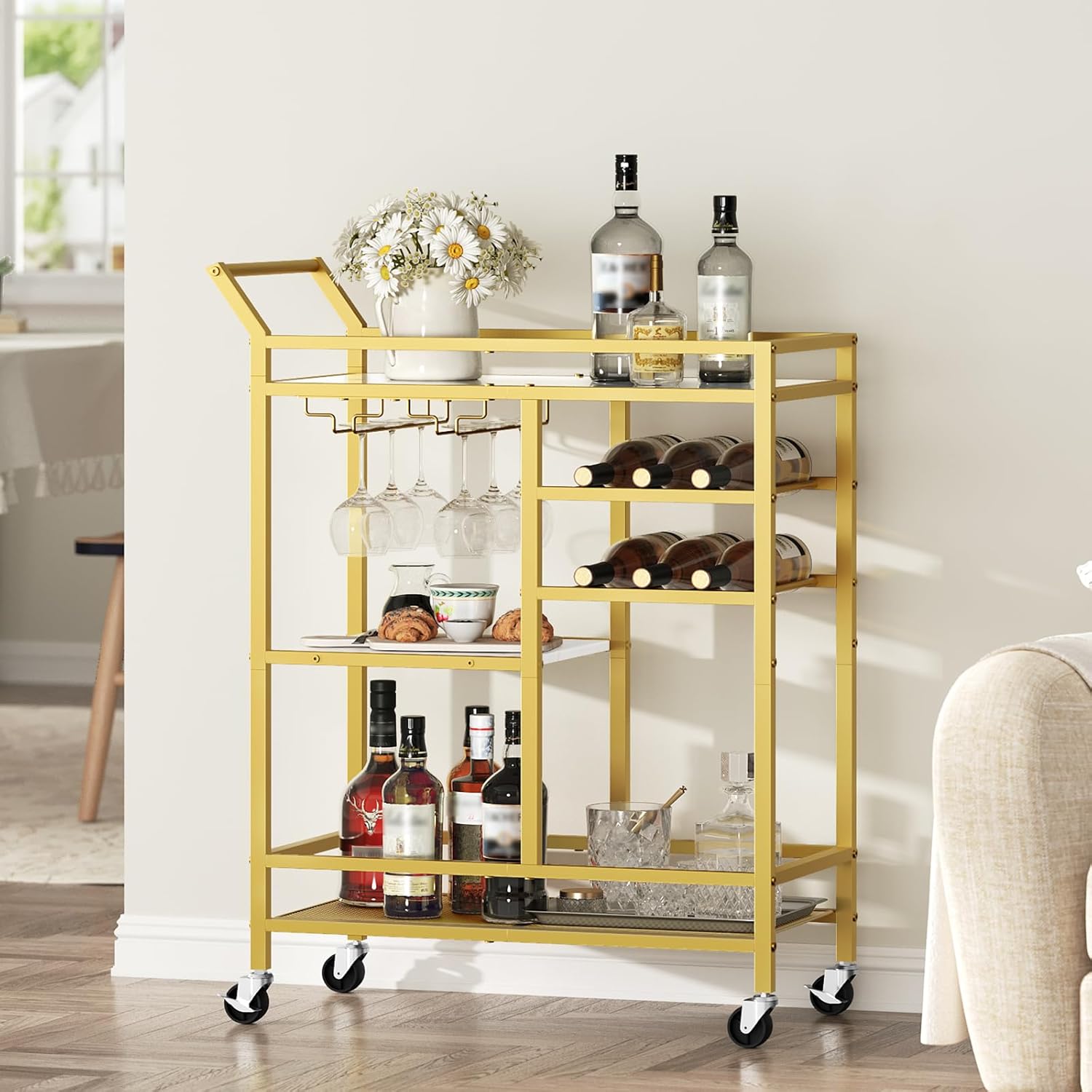- Versatile Use: This mobile bar cart serves as a kitchen trolley, coffee cart, beverage station, and even adds a stylish touch to entryways, living rooms, or offices. Whether serving drinks or storing items, it delivers both function and flair