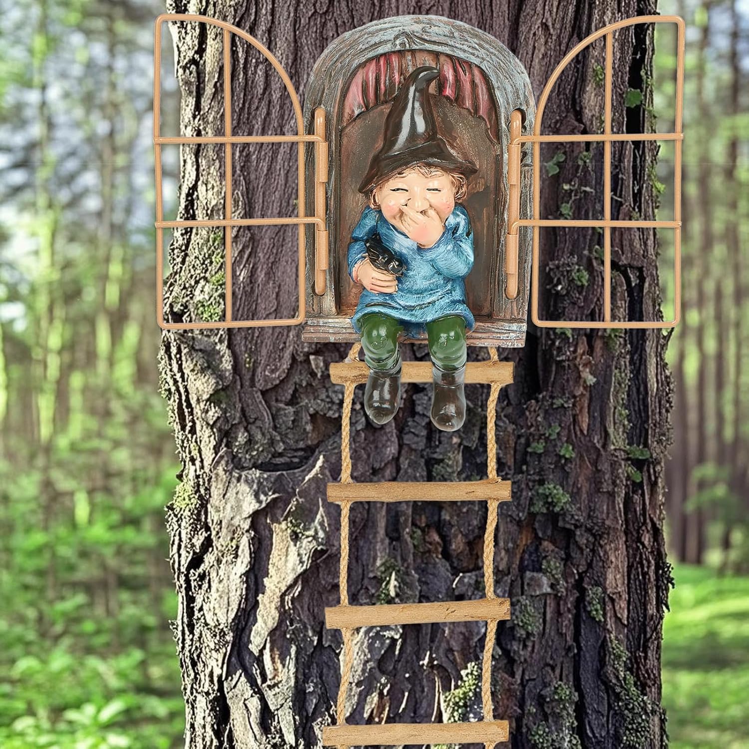 • Add Enchantment to Your Garden: Hang this elf sculpture on trees or fences, capturing him mid-climb through a realistic window frame as he descends a ladder, transforming your garden into an enchanted fairy tale scene that delights both adults and children with daily magic.
